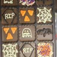 Halloween treats such a hollow chocolate pumpkins, miniature ghosts and hand-painted chocolate haunted houses lined the shelves and windows of the shop. A large wooden Halloween tree that was hand-carved by Libertini and painted to resemble chocolate greets visitors and passersby from the shop’s front window.