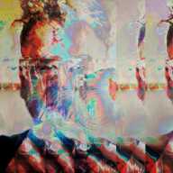 As of late, the visual artist has discovered the fascinating domain of the manipulated pixels, and entered the world of New Media Art. His digital prints find their birth in the raw data of a personal file. The few thousand pixels of the original image are then subverted to such transformation that the initial content only serves as a construct to an entirely new physicality. The underlying data of the original is manipulated and distorted via graphic and music software to reappear as a new layer of pixels—creating a psychedelic tableau suitable for reproduction.