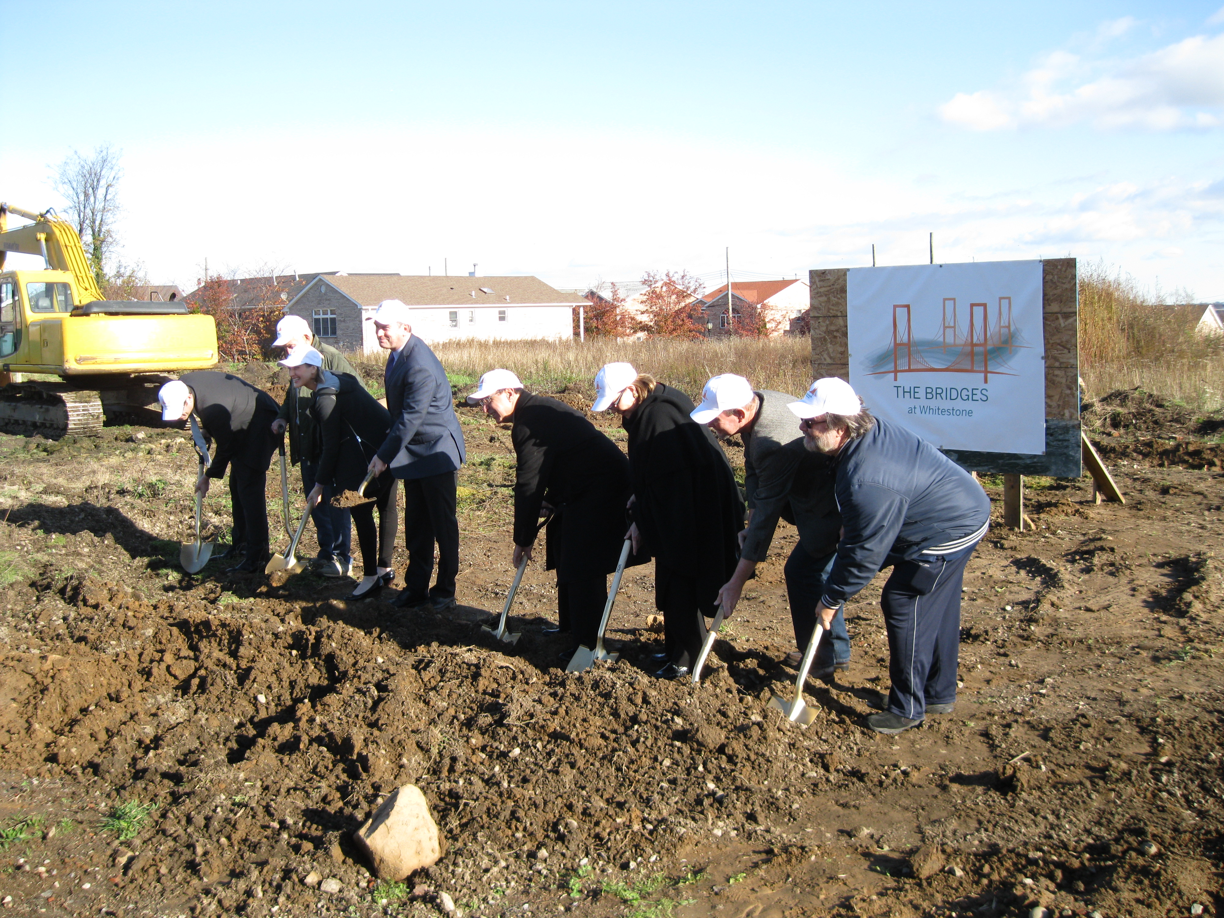 Ground was broken Friday morning on a 45-home development planned for the former Cresthaven Country Club site in Whitestone in a ceremony attended by officials, community leaders and real estate power players.