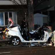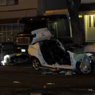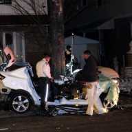 The unidentified 25-year-old driver was traveling along North Conduit Avenue near 120th Street at approximately 4:40 a.m. when he crashed, leaving his vehicle destroyed with the roof and both doors missing, the 106th Precinct said on Twitter.