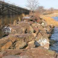 The tag-filled rocks are adjacent to the A line on the Jamaica Bay shoreline, thus making it visible to visitors and anyone traveling through the area. Though most everyone in the community agrees that the vandalism is an eyesore, the boulders’ location gave rise to a question of which government agency is responsible for its maintenance.