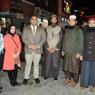 Muslim leaders such as Fahad Hussain of the Muslim advocacy group al Muneer Foundation and Imam Ismail from the Islamic Center of Jackson Heights were also present. Ismail led a prayer in Arabic.