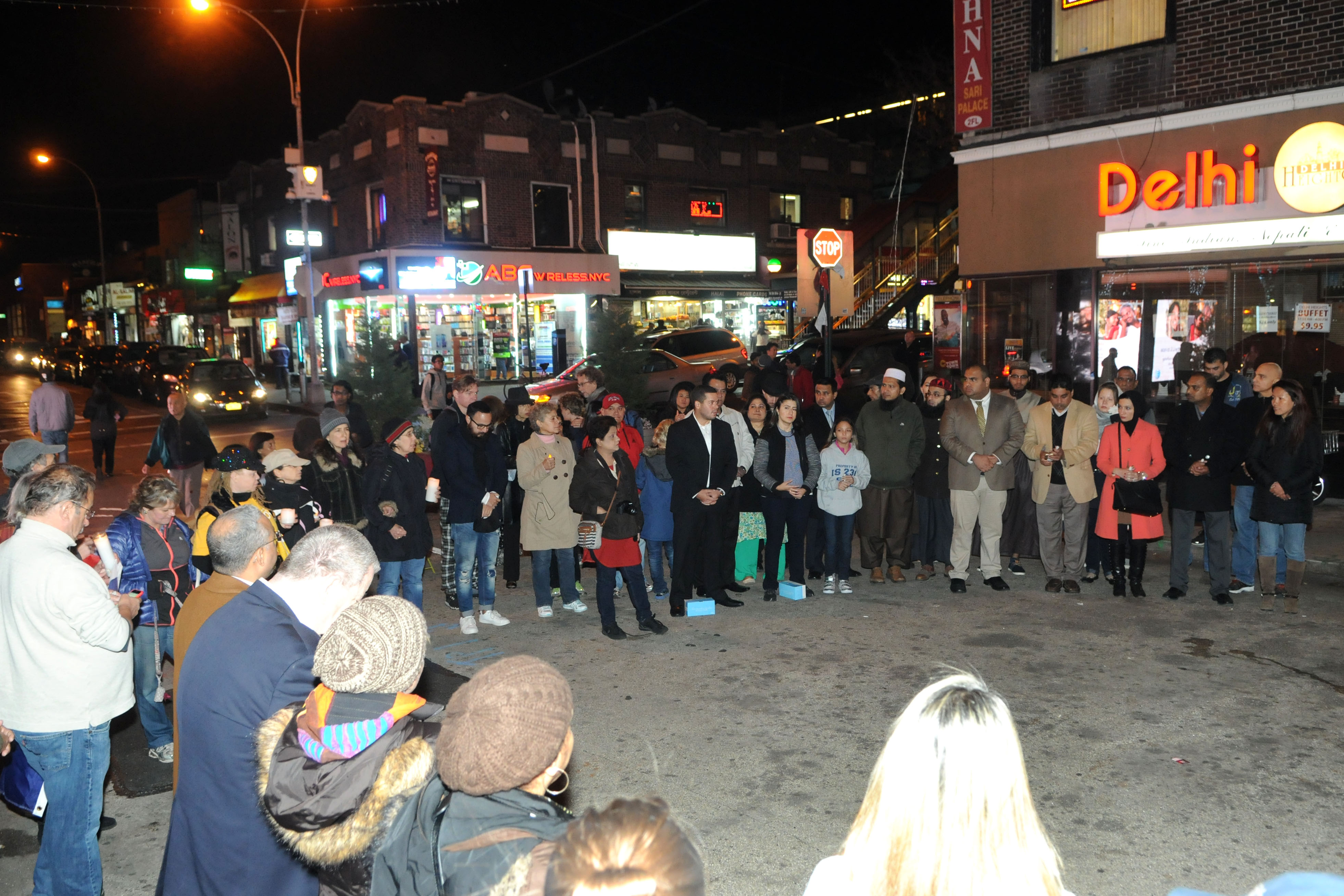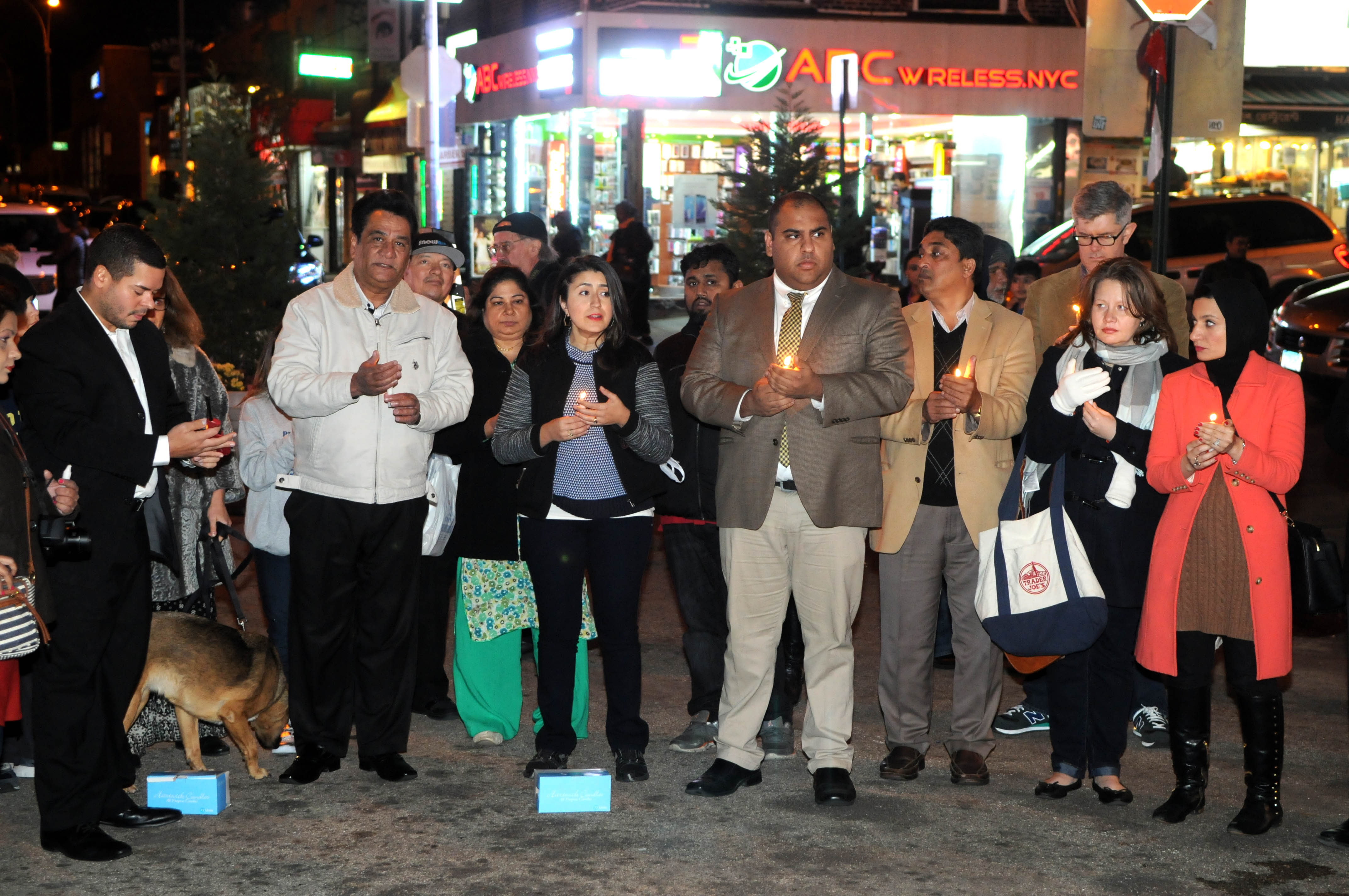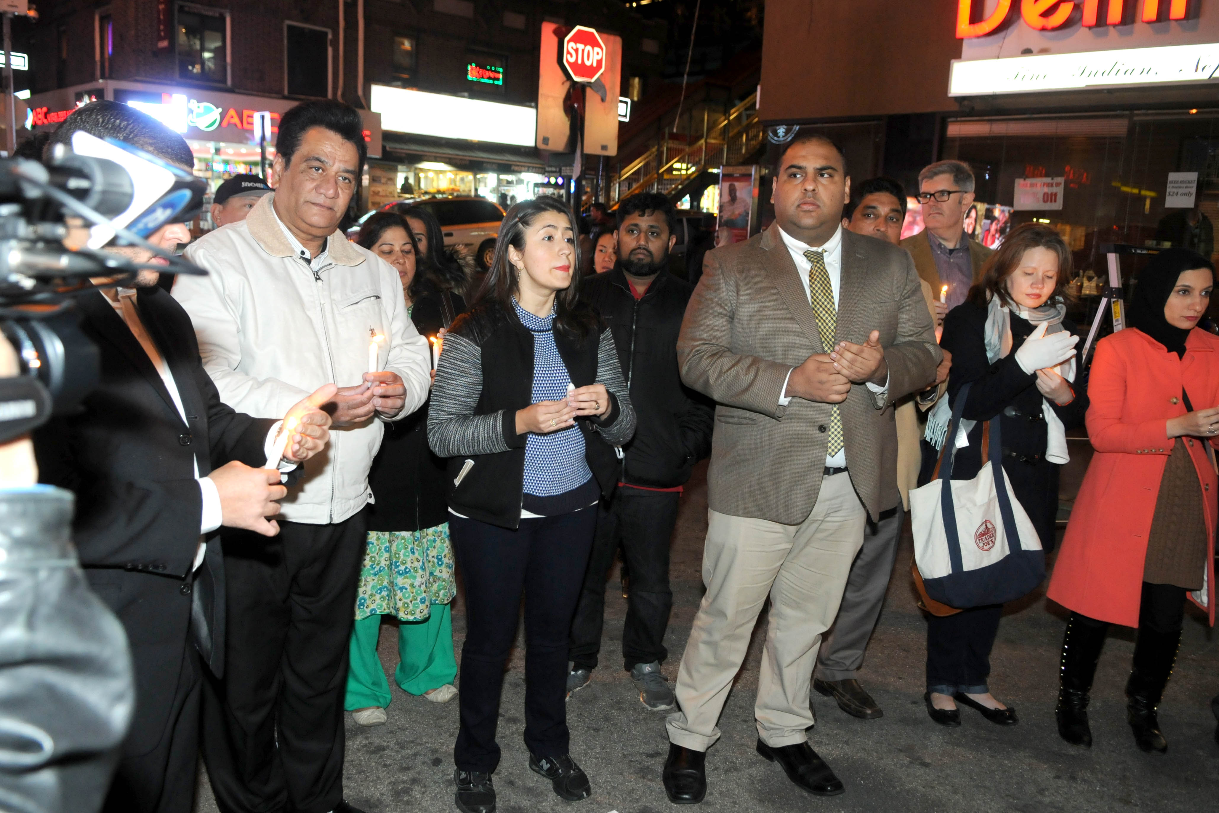 The vigil was attended by residents, religious leaders and politicians, in an ethnically diverse neighborhood that is home to a large Latino population and Asian enclave, with residents hailing from India, Pakistan and Bangladesh.