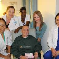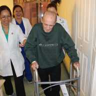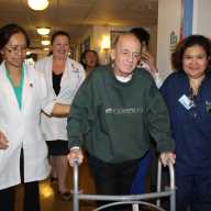 Staffers at the Pavilion at Queens rehab center are happy to have one less patient with the discharge of Frank Santos, who was near death upon his arrival and went home to his family this week.