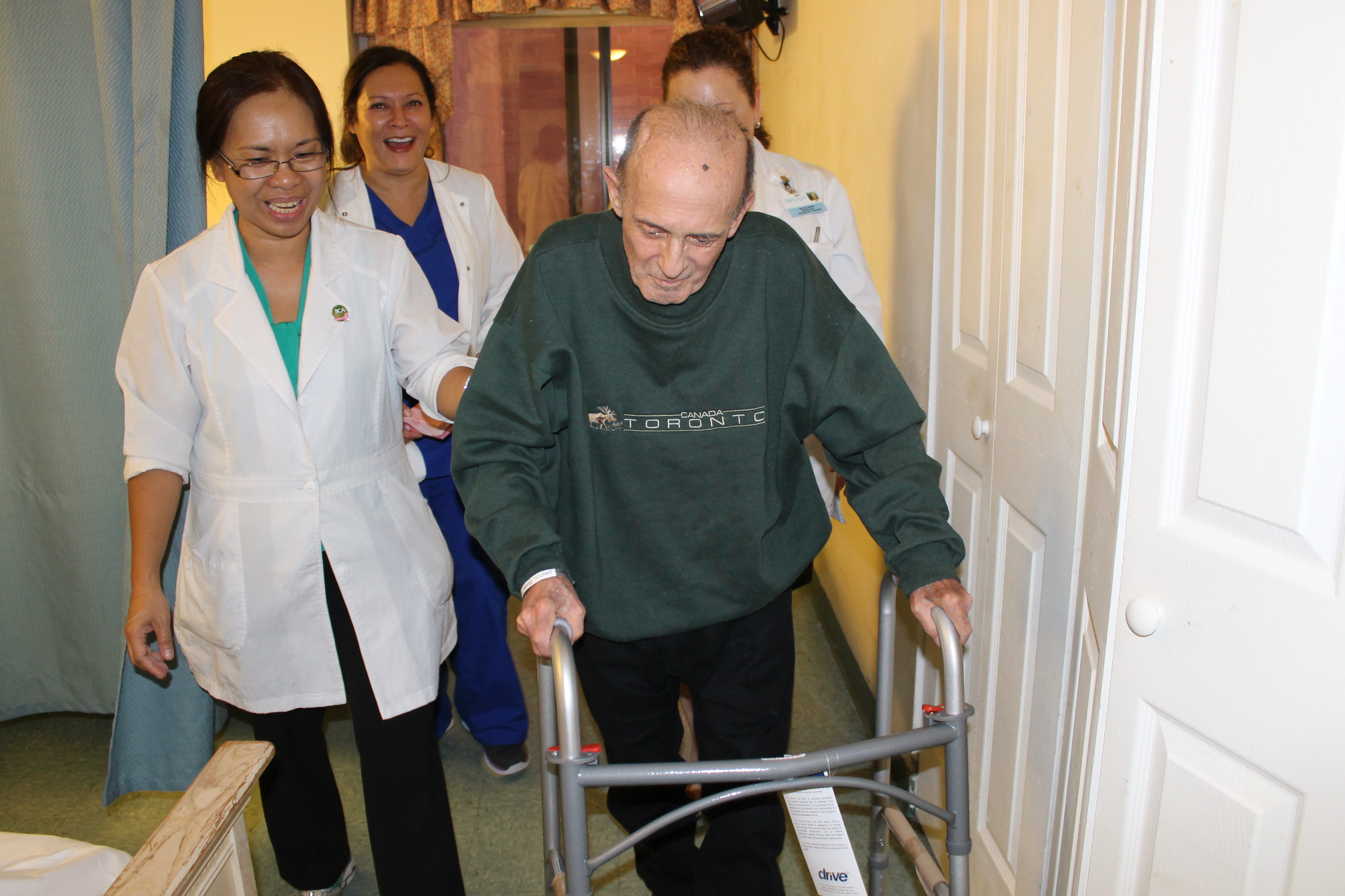 Staffers at the Pavilion at Queens rehab center are happy to have one less patient with the discharge of Frank Santos, who was near death upon his arrival and went home to his family this week.