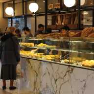 The space itself is pleasing to the eye, with a marble display counter that stretches down the length of the whole cafe. The choices of bread and desserts seem to be never-ending. Each treat available that day is featured in the glass case for patrons to peruse.
