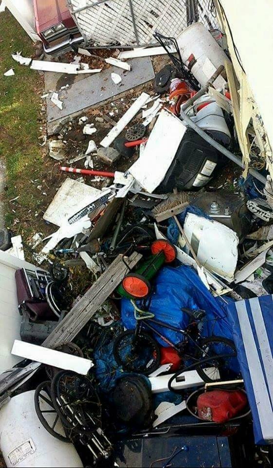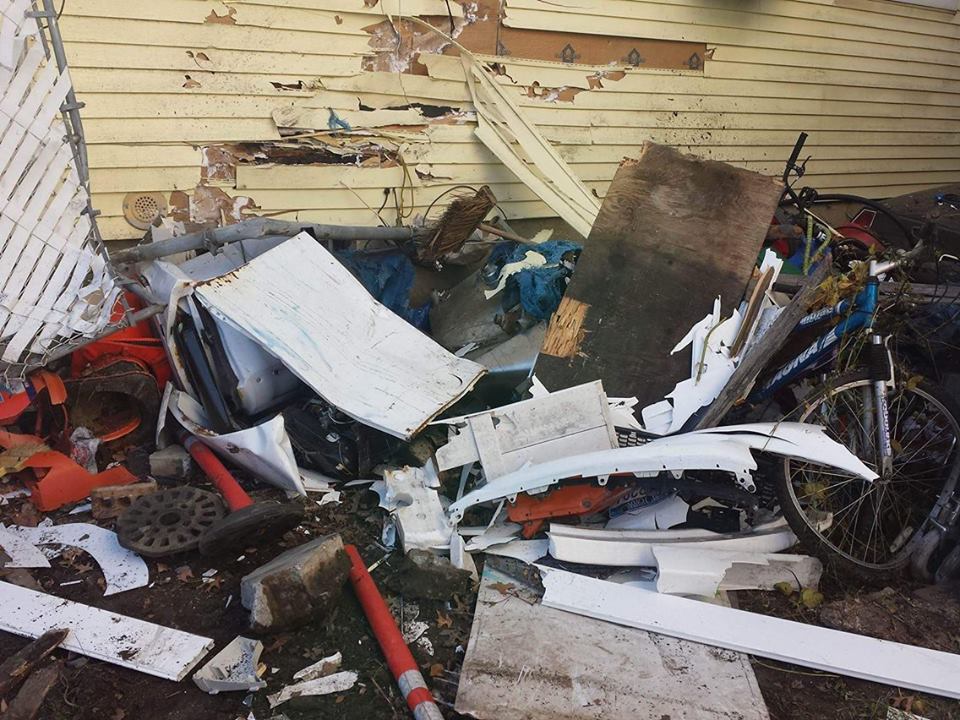 Items stored outside the home were mangled upon the impact, including bicycles and a washing machine.