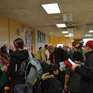 After the presentations, residents stayed at P.S. 305 to get information from all of the available representatives regarding their rights.
