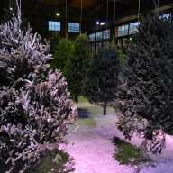 This year, it took Neff and a group of 10 volunteers two days to hang the trees in a grid formation at the Knockdown Center, allowing visitors to walk between the trees, giving them the feeling of being in a forest.