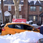 Two blocks to the west, on 78th Street between Juniper Valley and 66th Roads, a group of people worked to free a yellow cab that became stuck in the snow-covered street at about 3 p.m. Two vehicles were behind the stuck taxi, and their occupants got out to assist neighbors in shoveling the snow away and eventually pushing the taxi forward. According to PlowNYC, a plow visited the block a half-hour later.