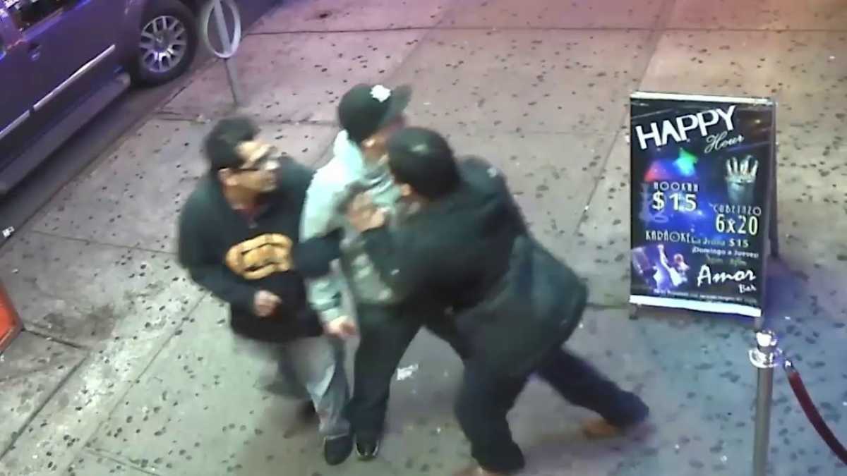 Police released on Tuesday night images of three individuals wanted in connection with a recent knife attack in front of a nightclub in Jackson Heights.
