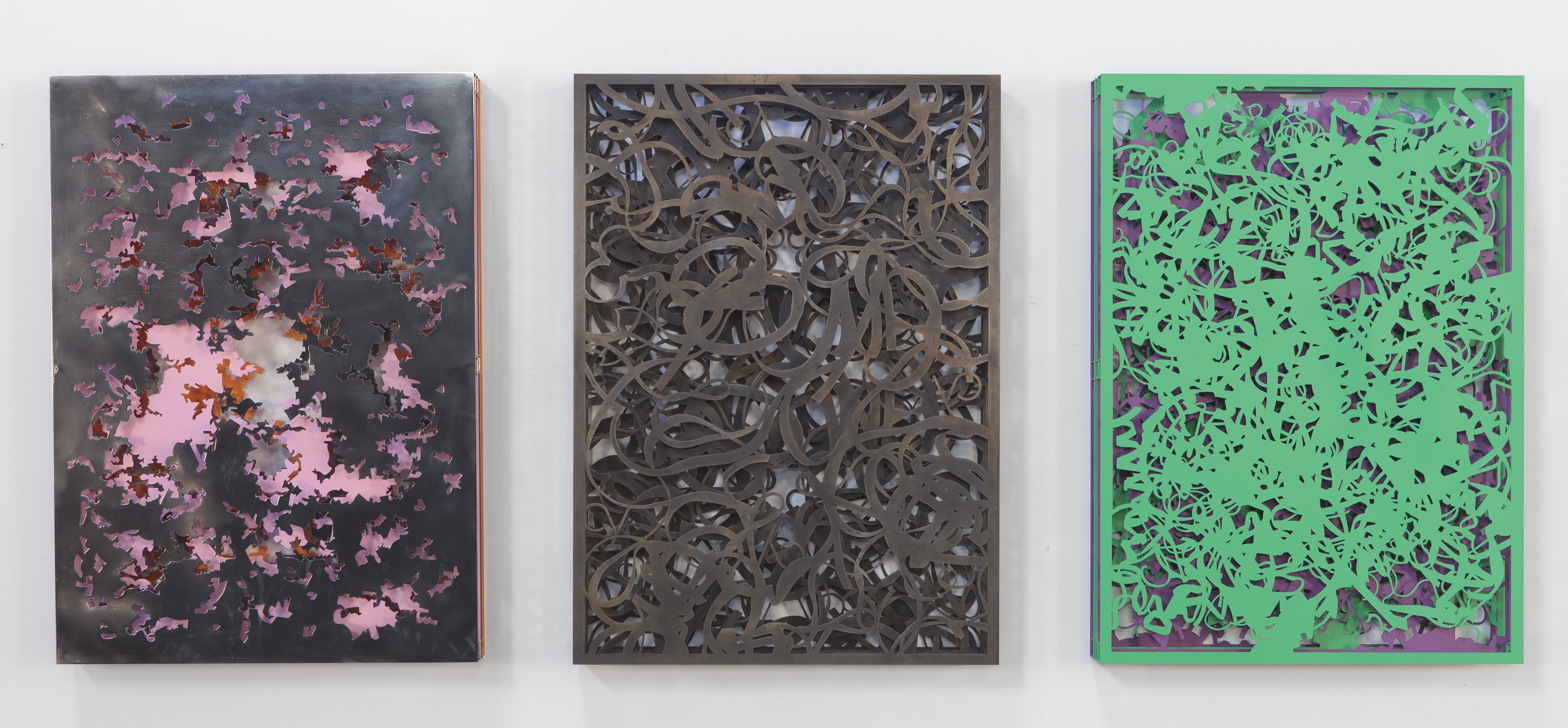 He has also been working on a new set of sculptures. Yockey has been utilizing pieces of 22-inch by 30-inch drawing paper to create rigid, layered panels to create three-dimensional works. As an artist who uses industrial materials to create his work, Yockey has seen his work shift and change as the industrial world does as well.