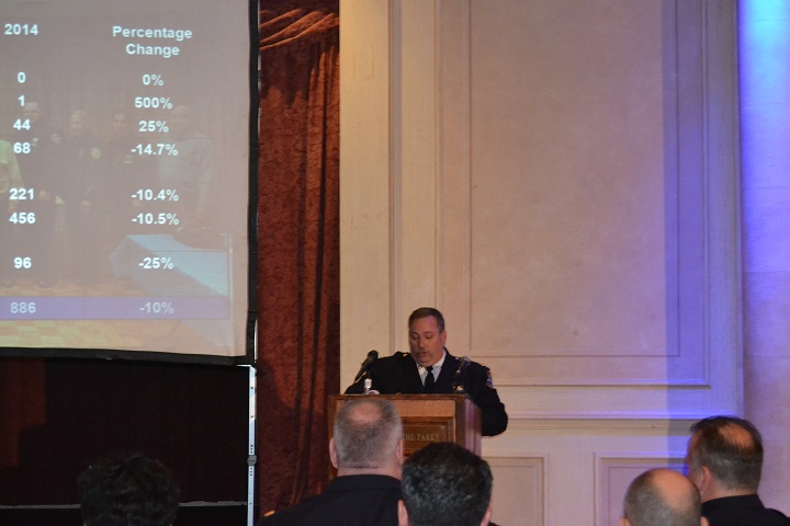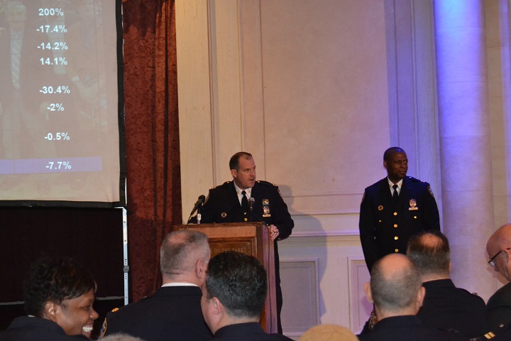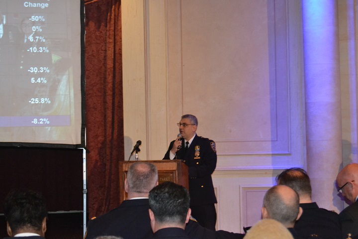 There was a sea of blue at Terrace on the Park on Tuesday morning, as officers from northern Queens precincts heard a report from the Patrol Borough Queens North commander about overall crime last year and plans to keep crime down in 2016.