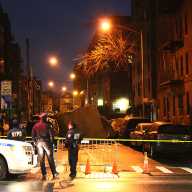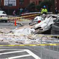 A huge outer portion of a Verizon building in Elmhurst collapsed onto the street below early Thursday morning after a long night of torrential rain and windstorms.