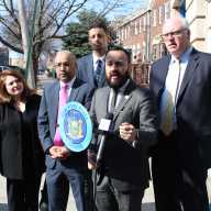 State Senator Jose Peralta, Congressman Joseph Crowley and Assemblyman Francisco Moya stood in front of the 110th Precinct stationhouse in Elmhurst on Thursday and called on the NYPD to create a satellite office for the precinct at Flushing Meadows-Corona Park.