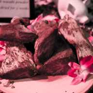 Rhonda Kave operates Roni-Sue’s Chocolate Shoppe & Cafe at the Lower East Side in Manhattan. At the Charcuterie Masters, her bacon covered in chocolate was a hit.