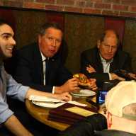 Kasich visited Gino’s Pizzeria on Cross Bay Boulevard and enjoyed a slice with Queens County GOP Chairman and City Councilman Eric Ulrich, who represents the neighborhood and is one of only three Republicans in the City Council.