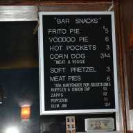 The bar also serves up some tasty snacks including corn dogs (meat or veggie), meat pies from Brooklyn’s Dub pies, chips and onion dip, fresh pretzels from Sigmund’s, hot pockets, Frito pie and Zapps chips.