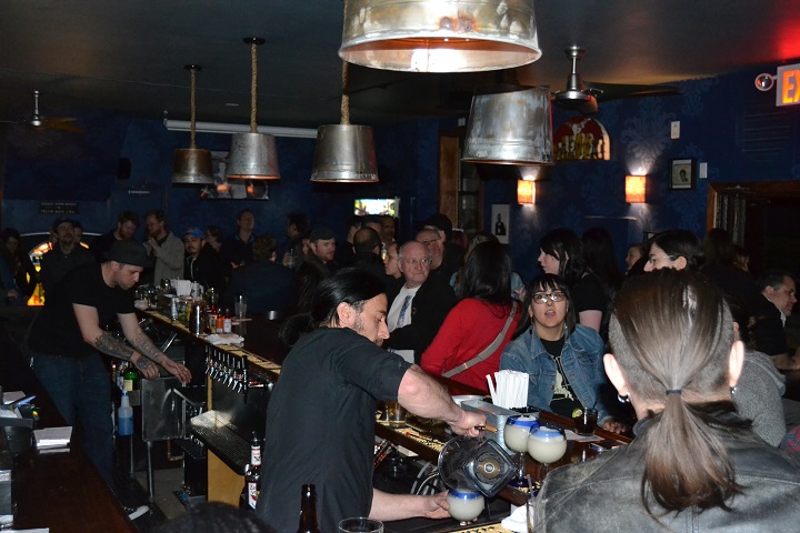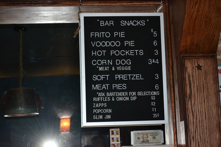 The bar also serves up some tasty snacks including corn dogs (meat or veggie), meat pies from Brooklyn’s Dub pies, chips and onion dip, fresh pretzels from Sigmund’s, hot pockets, Frito pie and Zapps chips.