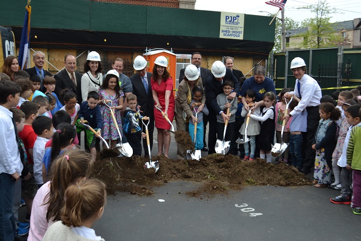 “There are just too many students that live in our community that want to go to P.S./I.S. 49 because it is an excellent school,” Crowley told the students on hand for the ceremonial groundbreaking. “Today represents an investment in our community, in our children and in our collective futures.”