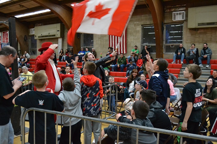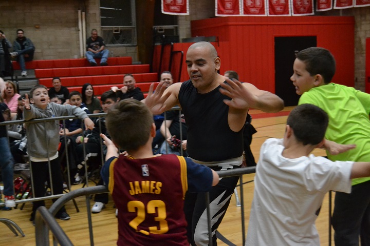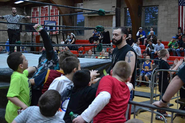 The ECPW crew set up a ring in the center of the St. Margaret’s gymnasium, and before the show got underway, kids were invited into the ring to bounce off the ropes, climb the turnbuckles and see how it feels to be a professional wrestler.