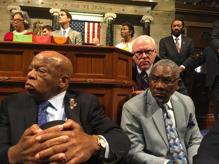 House Democrats, led by Georgia Congressman John Lewis, began their protest just after 11 a.m. Wednesday demanding that the Republican-led chamber take a vote on proposed gun control regulations in the wake of the June 12 mass shooting at a gay nightclub in Orlando, Florida.