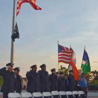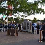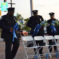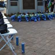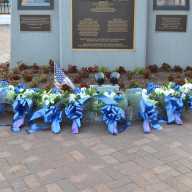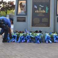 Officers from the 104th, 108th and 110th precincts came together with members of Communities of Maspeth and Elmhurst Together (COMET), elected officials, members of Maspeth Federal Savings, and the community at Maspeth Memorial Park on Thursday, July 21, to place wreaths at the Maspeth Memorial in honor of the nine officers who died in the line of duty in Dallas, Baton Rouge and Kansas City.