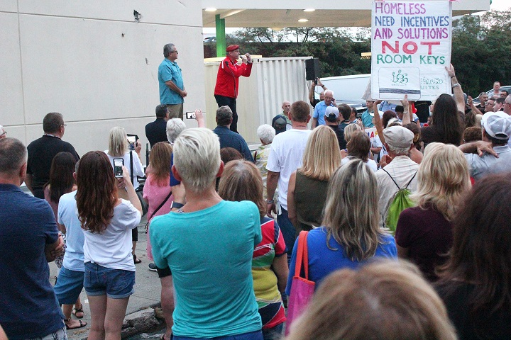 With no official word from the city about the hotel no longer being considered for a homeless shelter, the protesters continued to gather outside of the establishment on Friday, this time with a special guest.