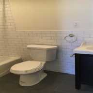 The second floor is made up of two apartments: one two-bedroom, one-bath box apartment; and one three-bedroom apartment, with two full bathrooms.
