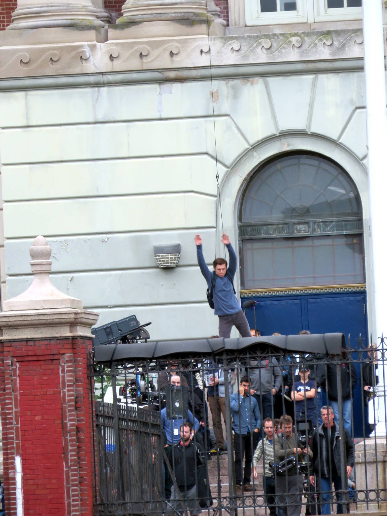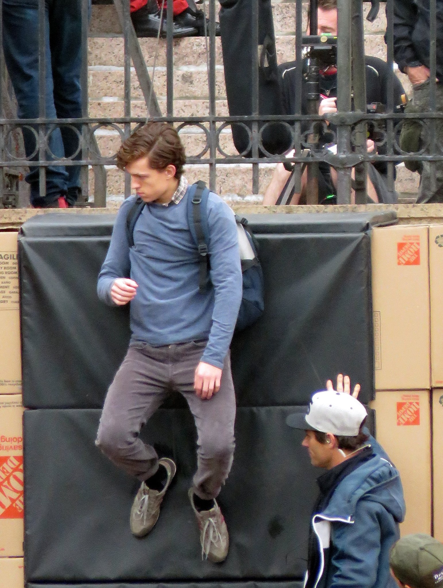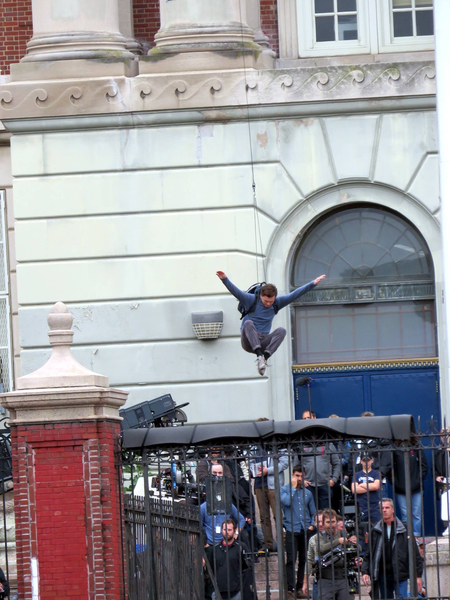 Actor Tom Holland, who will be the third person to portray Spider-Man on the big screen (following Tobey Maguire and Andrew Garfield), was filming at Franklin K. Lane High School in Woodhaven. More accurately, Holland was filming his own stunts for the upcoming Spider-Man movie.