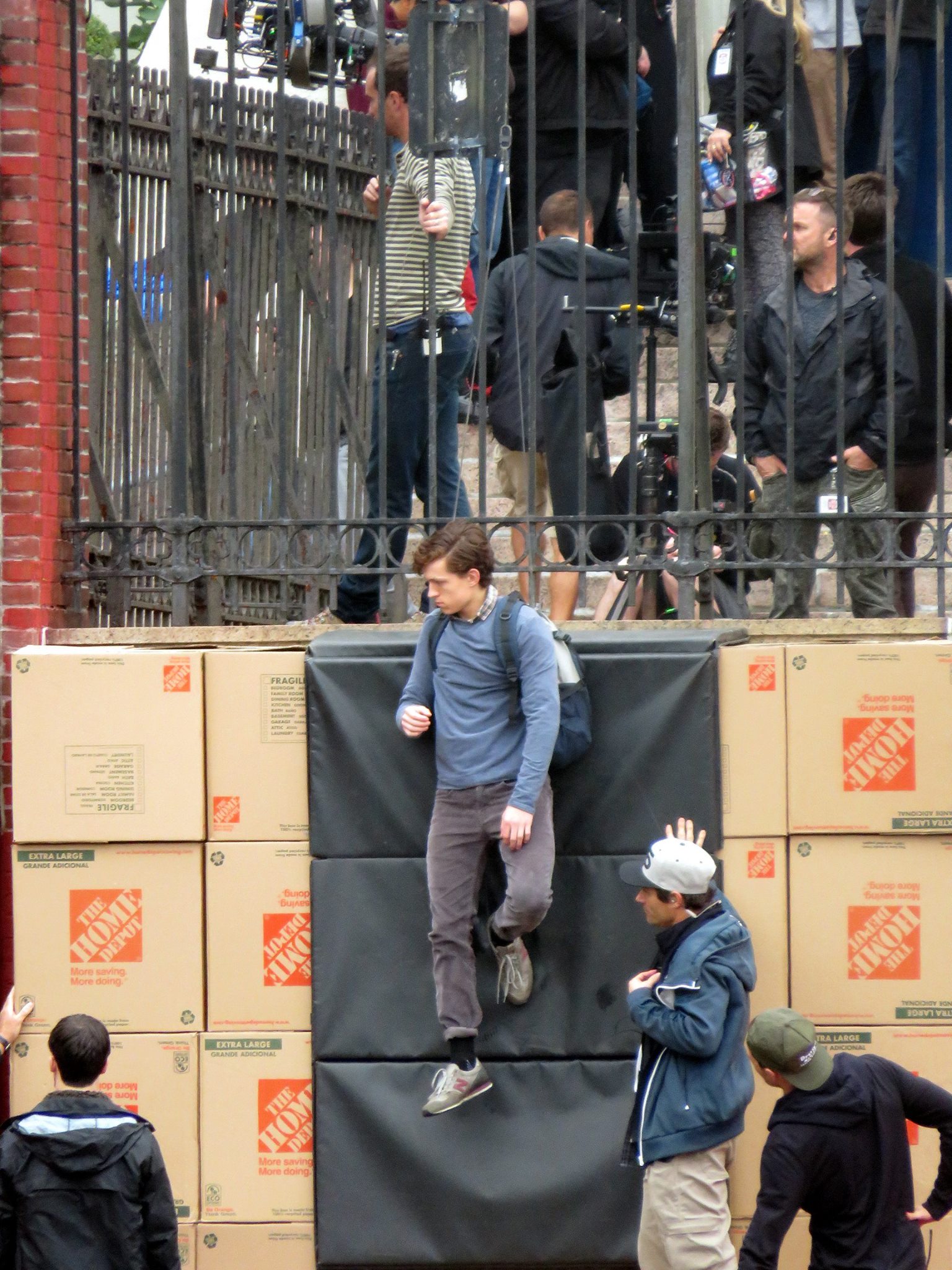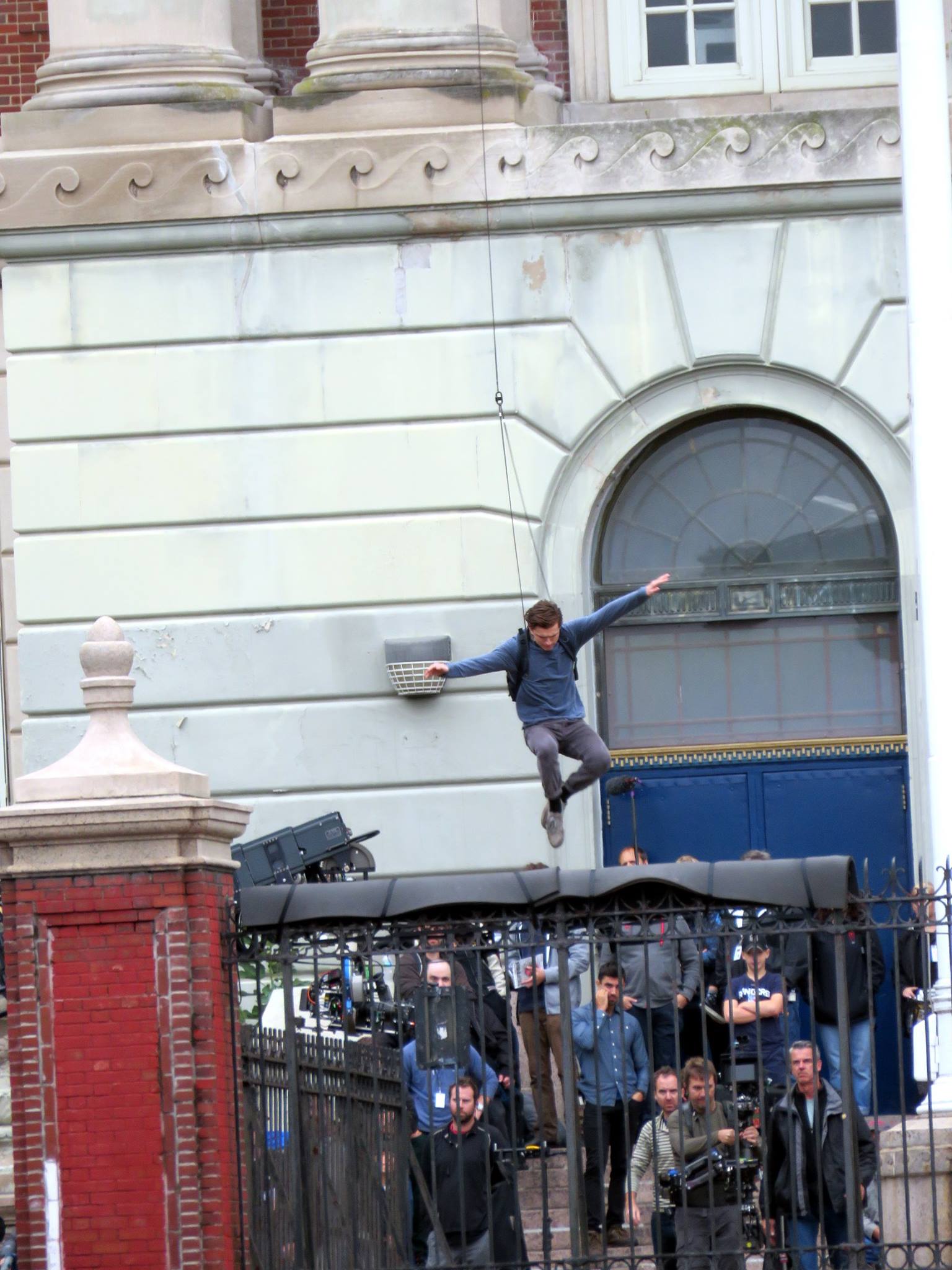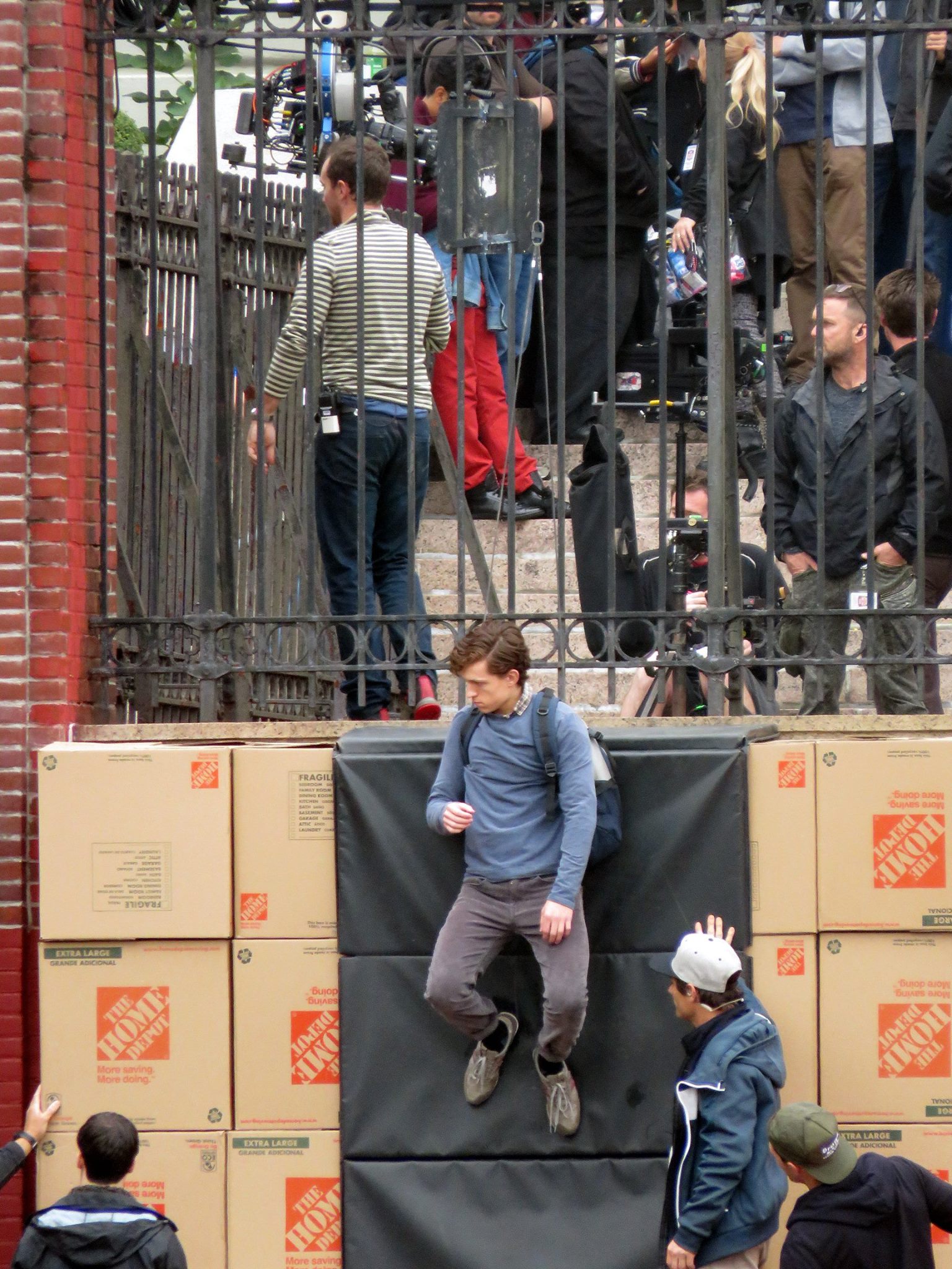 Actor Tom Holland, who will be the third person to portray Spider-Man on the big screen (following Tobey Maguire and Andrew Garfield), was filming at Franklin K. Lane High School in Woodhaven. More accurately, Holland was filming his own stunts for the upcoming Spider-Man movie.