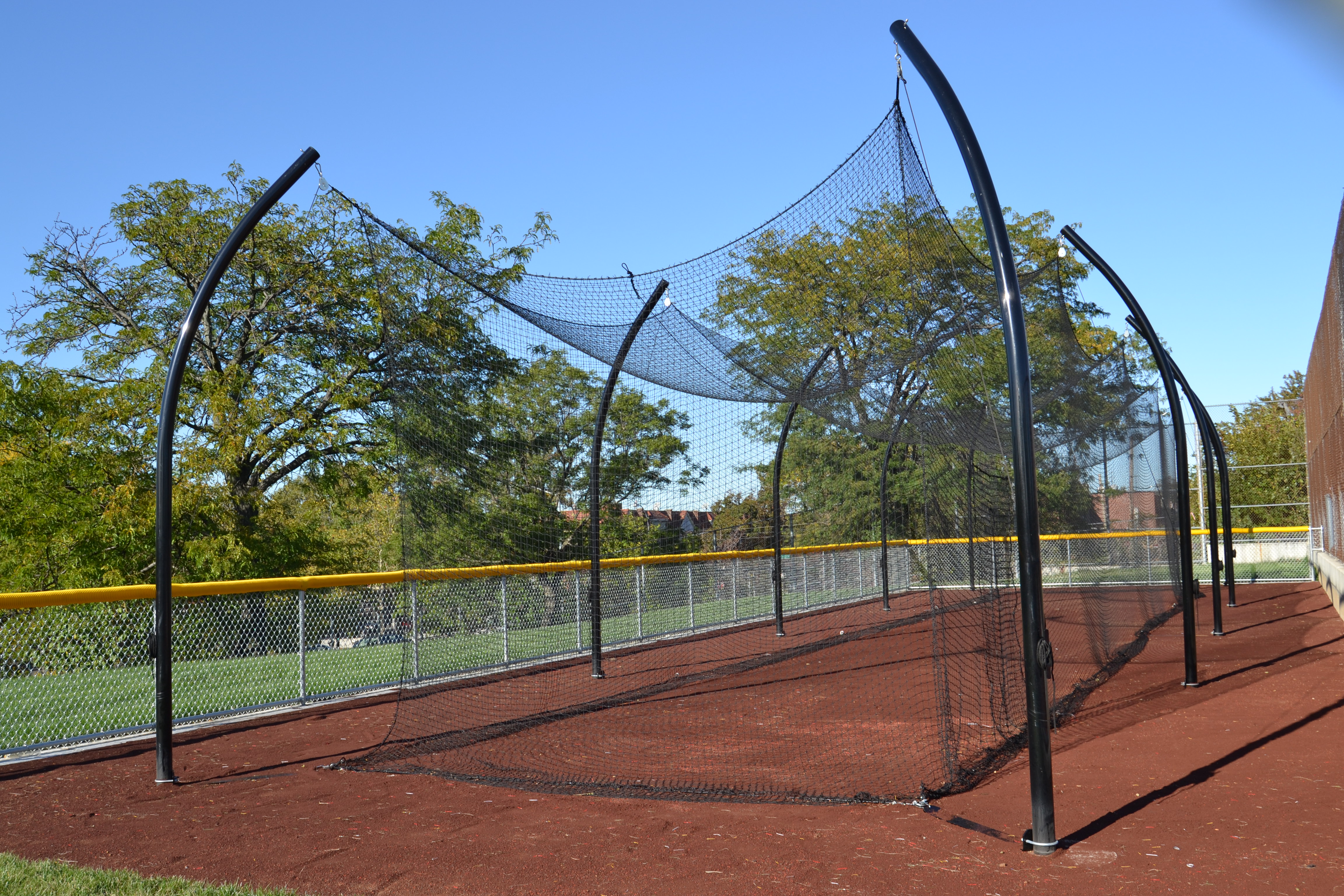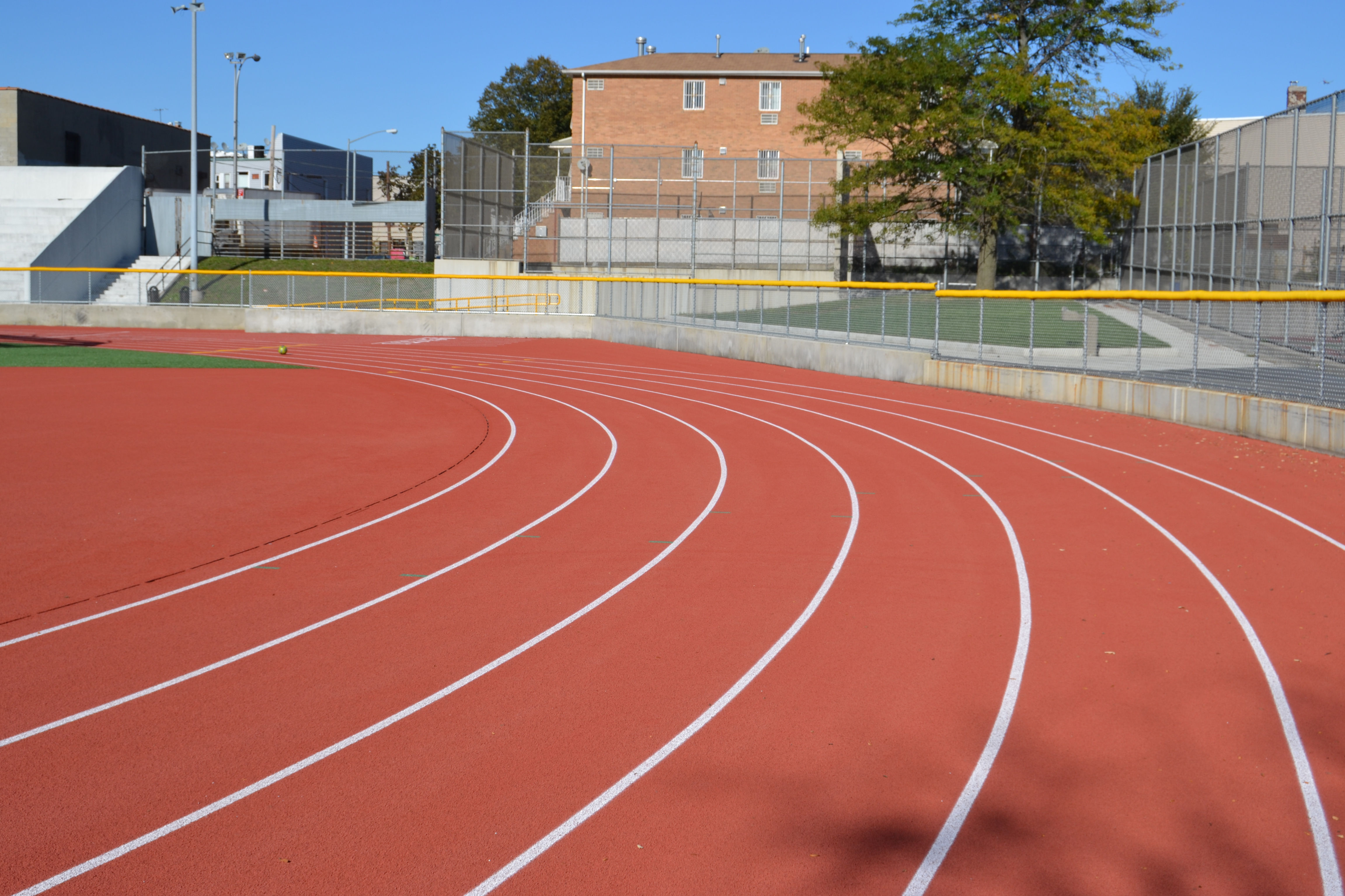 The new athletic field has a full-size, AstroTurf soccer pitch with playing lines for boys and girls lacrosse, regulation-sized softball and baseball fields, a multi-lane track around the perimeter, a state-of-the-art batting cage, and two handball courts and four tennis courts — which were already at the previous field.