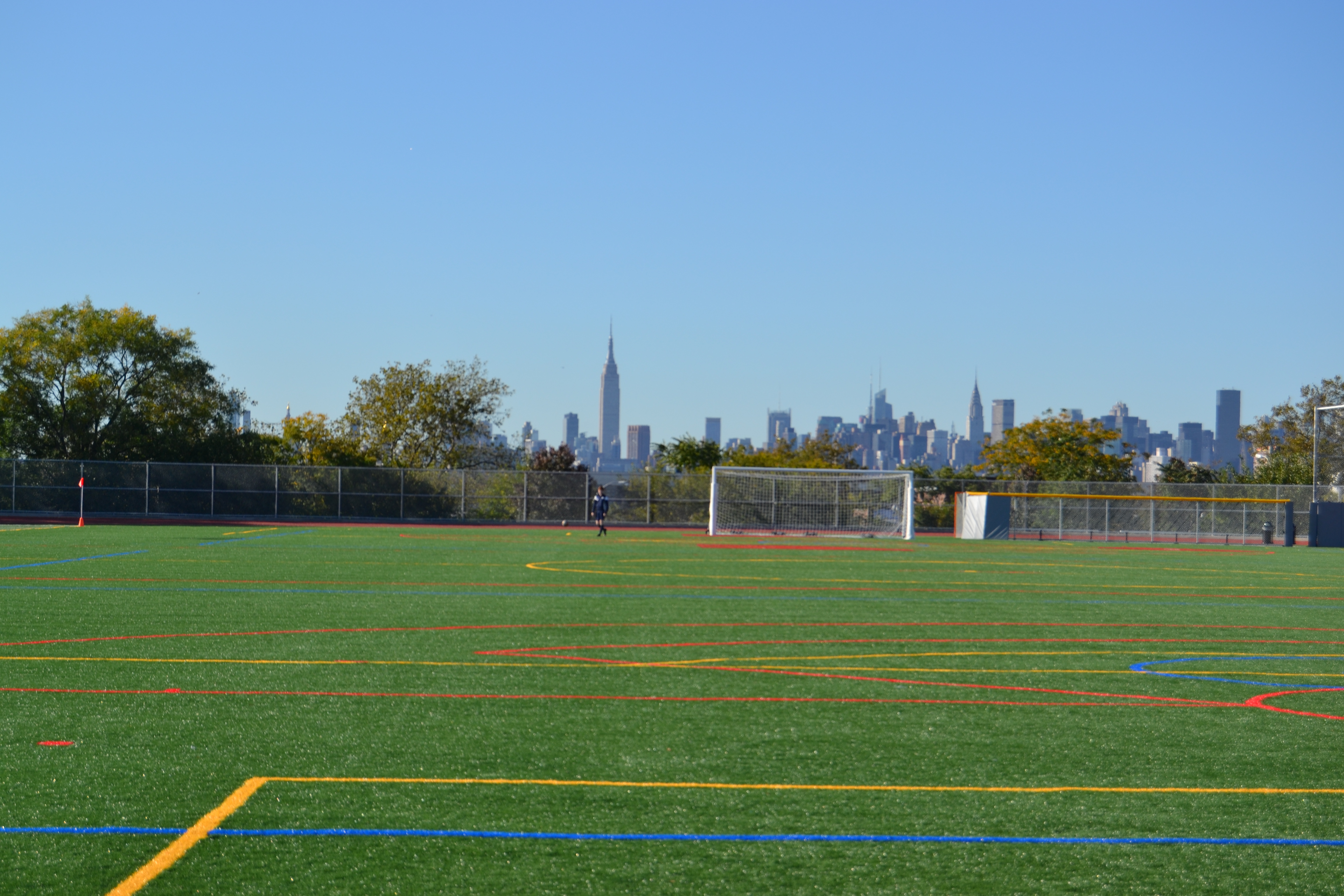In February, the school broke ground on the new athletic filed. Only eight months later, it can be hard to believe that the project is complete, with a fully functioning electronic scoreboard and a beautiful view of the Manhattan skyline.