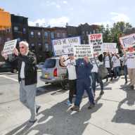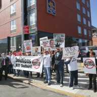 “Just like our friends from Maspeth, we are here from Elmhurst and we are here to fight the same battle right here in Sunset Park,” he said, standing in front of one of Sunset’s hotels. “The rooms behind me cost $160 per night. You do the math and it’s $4,800 per month per room. Meanwhile you look at Craigslist and there hundreds of apartments for rent around here at one-third the cost.”