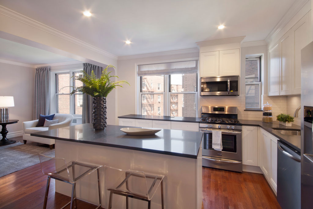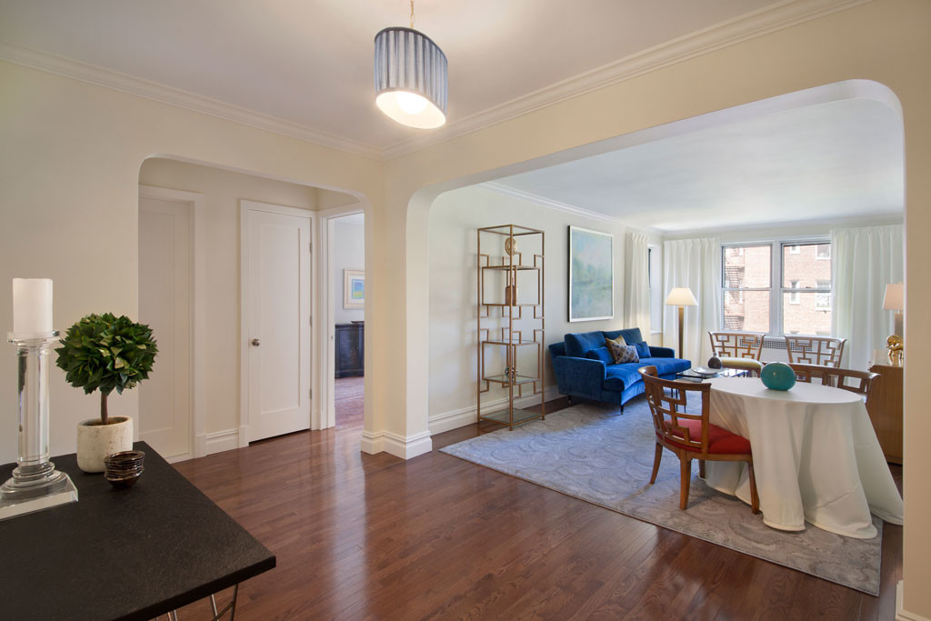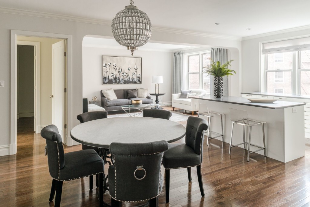 Originally built in 1941, the building was designed by Sylvan Bien, best known for his design for the Carlyle Hotel. The apartments keep many of the old-school decorative details of the pre-war styles but add a modern twist with open kitchens, high-end appliances and sharp, sleek finishes.