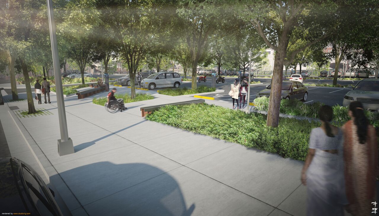 Set to open in the fall of 2017, the new parking lot will include six ADA spaces, one van accessible ADA space, ADA ramp access, seven motorcycle spaces, and four electric vehicle charging stations, as well as new stormwater management and sewer systems, sitting areas, lighting and landscaping.