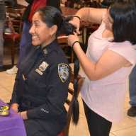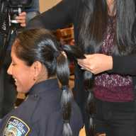 “I commend her for what she is doing. I think it’s 22 inches of hair, maybe a little more. We’ll see, her hair grows very quick,” Deputy Inspector Mark Wachter, commanding officer of the 104th Precinct said. “To donate your hair, and this amount of hair is tremendous — 22 inches of hair — and just to think what children’s lives will be changed by this donation. I’ve got to thank Sandra for doing this.”