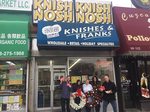 This past Sunday, a fundraiser was held at Knish Nosh, located at 98-104 Queens Blvd., between 11:00 am and 3:00 pm. For a suggested donation of $50, about a dozen visitors received a “mystery” gift card from Century 21 department store valued between $5 and $500, as well as a holiday wreath valued at approximately $40.