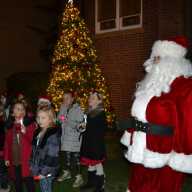 Old St. Nick led the countdown to the tree lighting in front of the church. Once the tree was lit, members of Girl Scout Troop 4419 entertained the audience with their renditions of Christmas songs including “Rudolph the Red Nosed Reindeer,” “Silent Night,” “We Wish You a Merry Christmas,” and other holiday jingles.