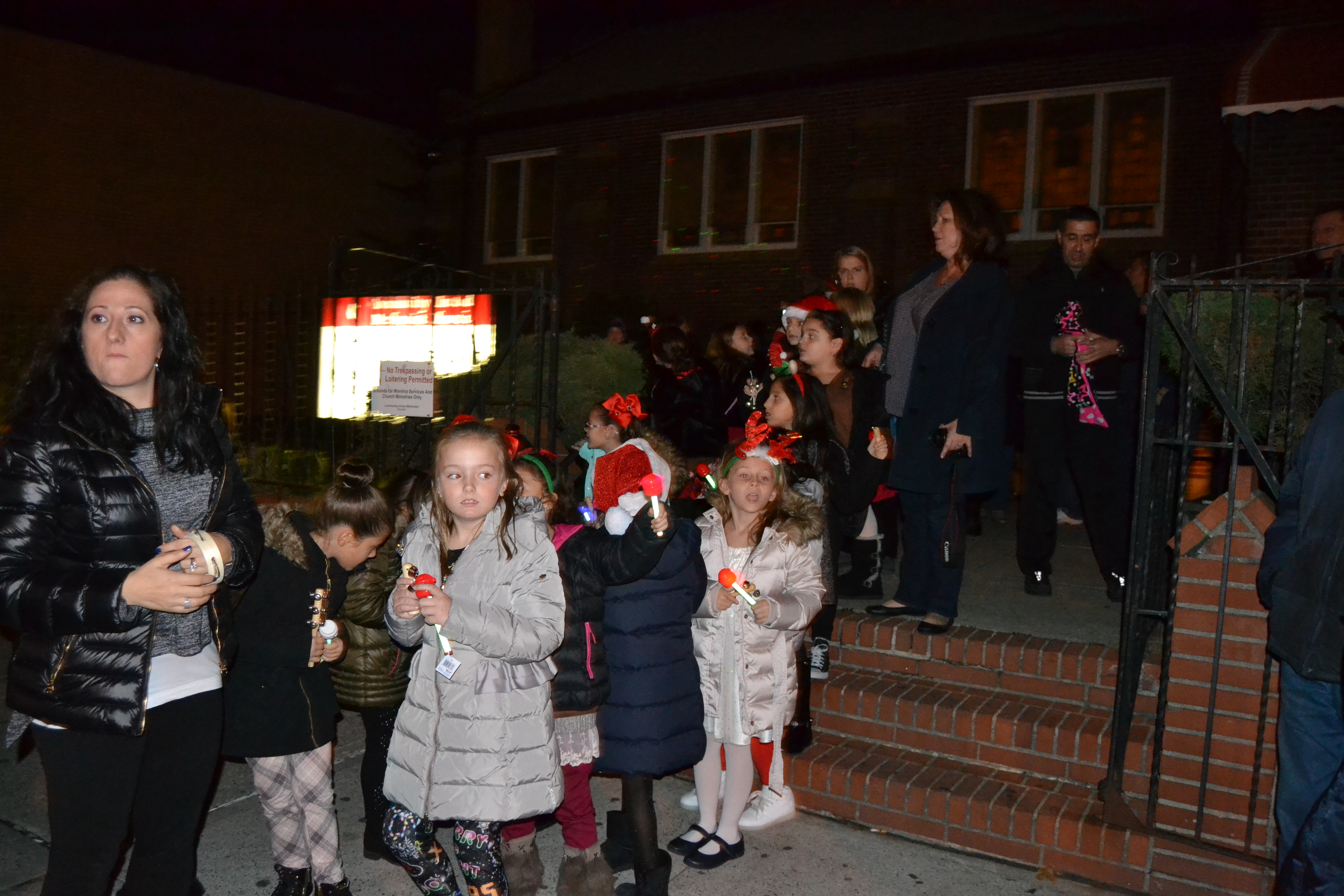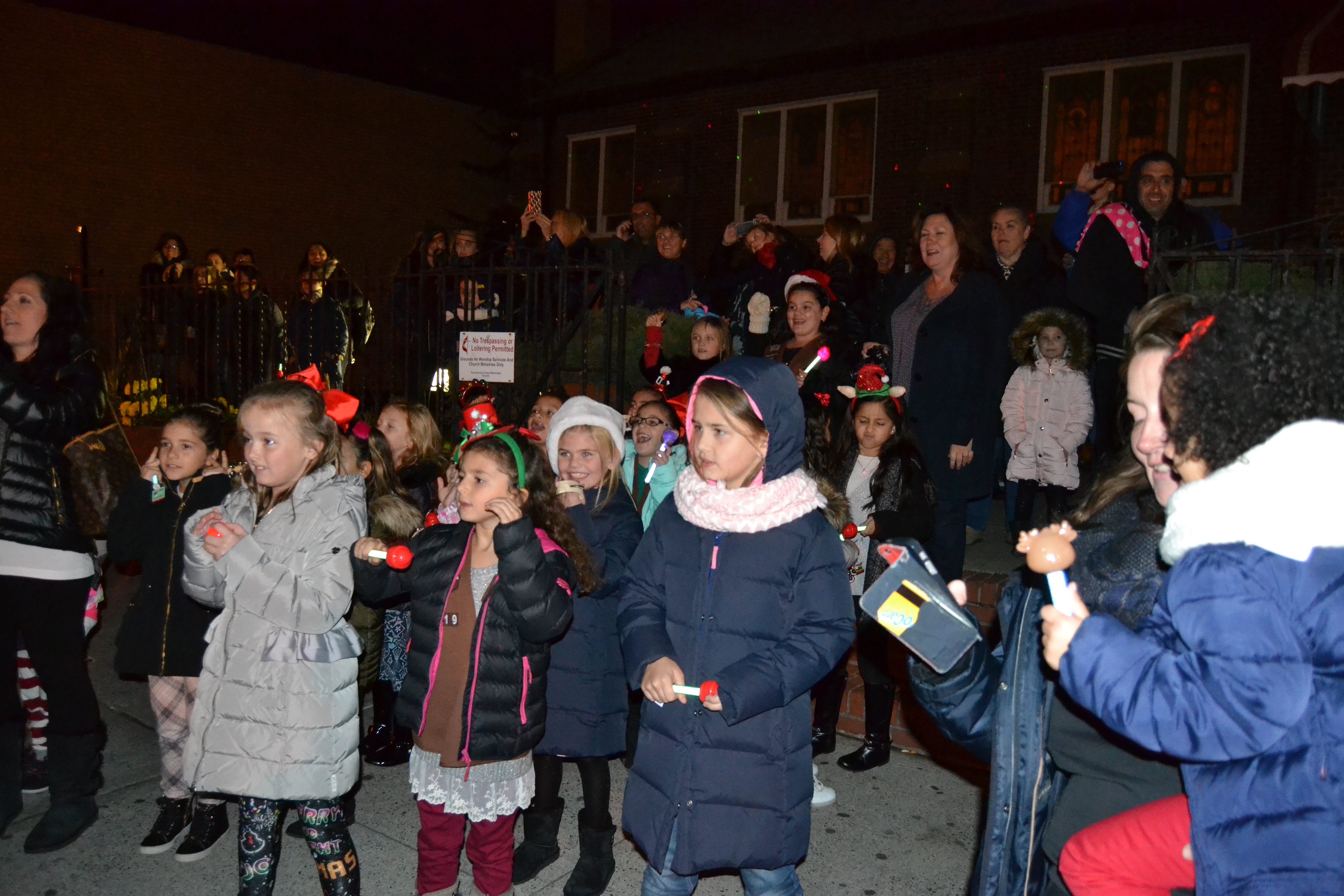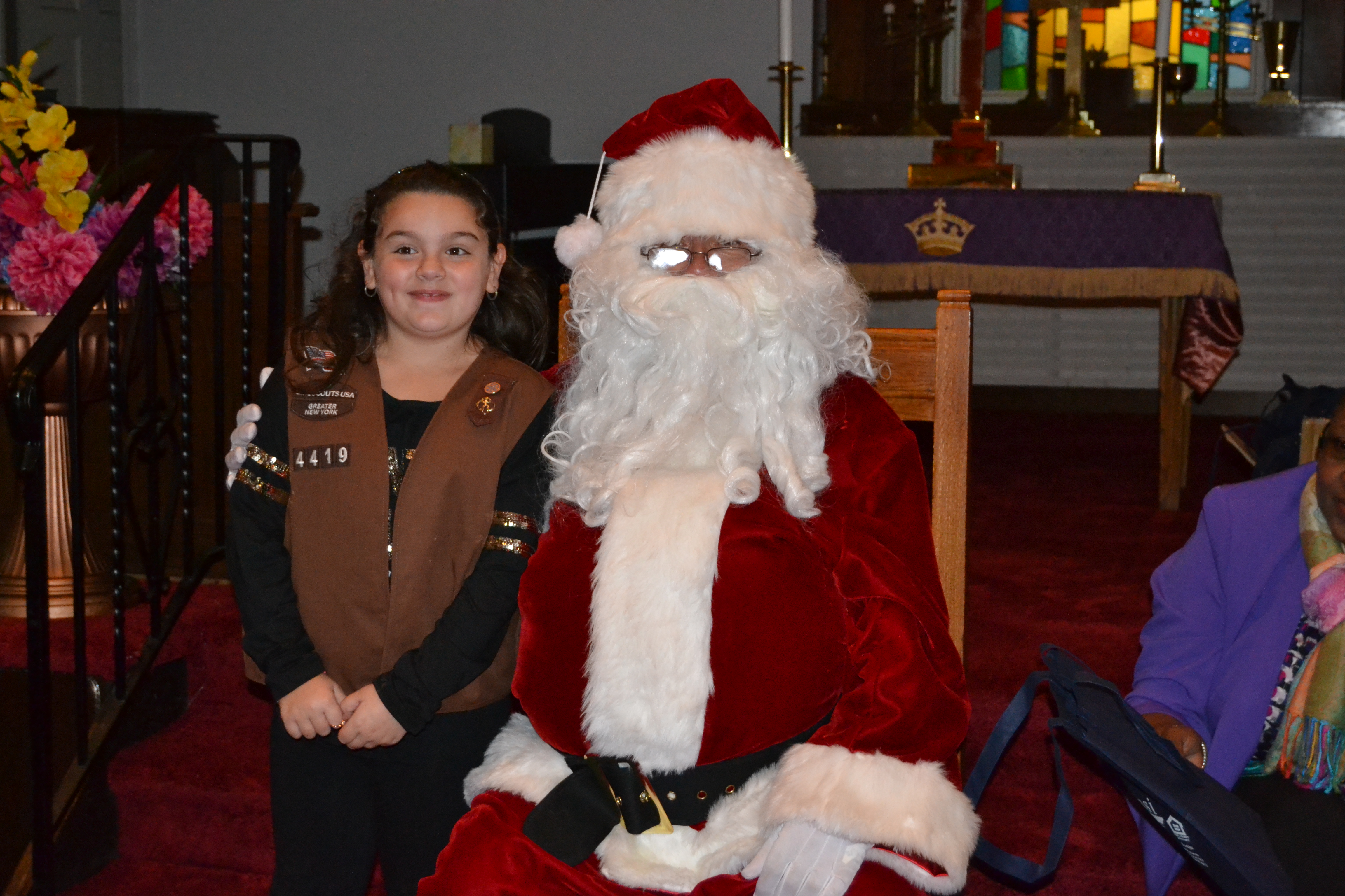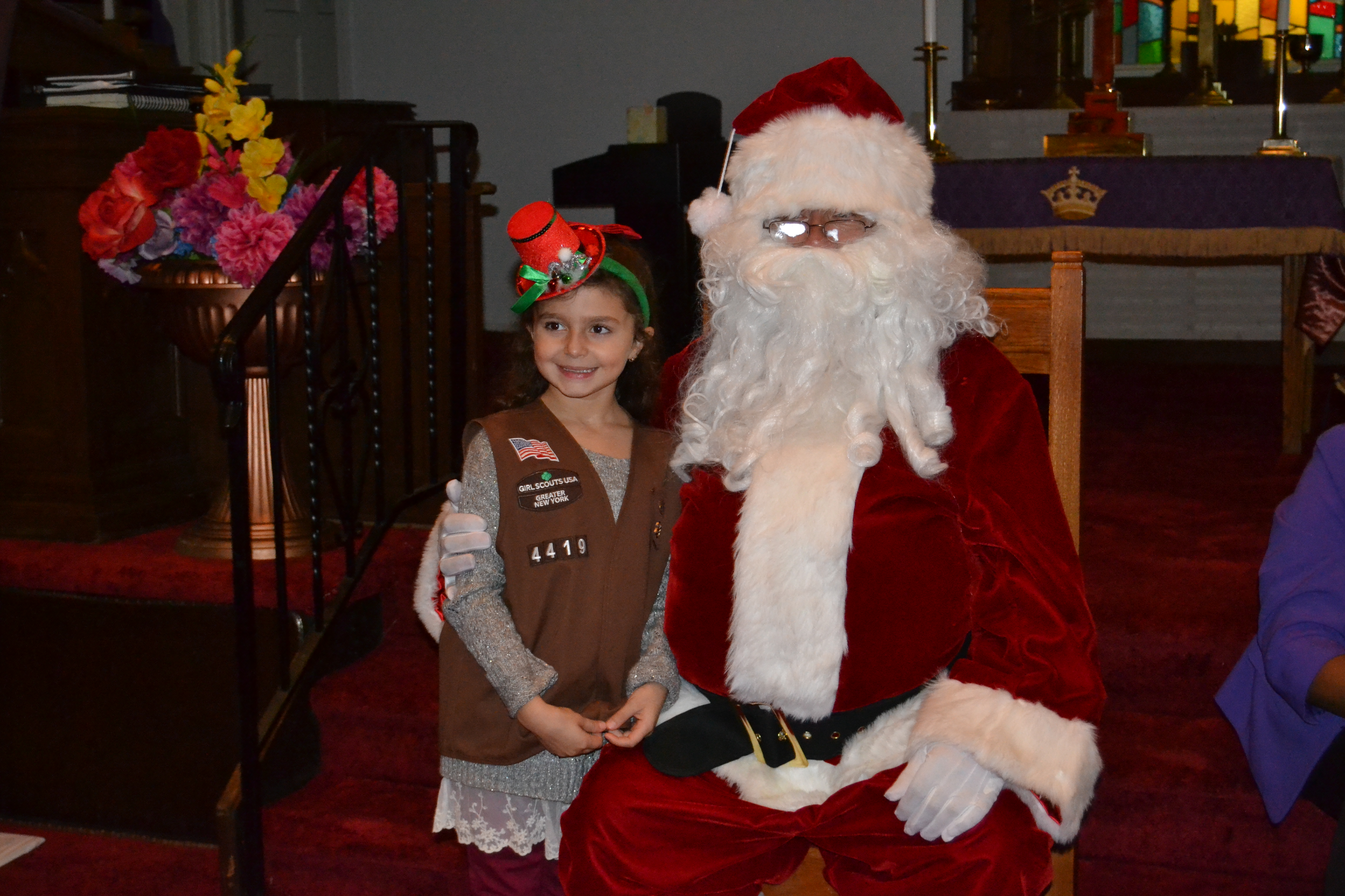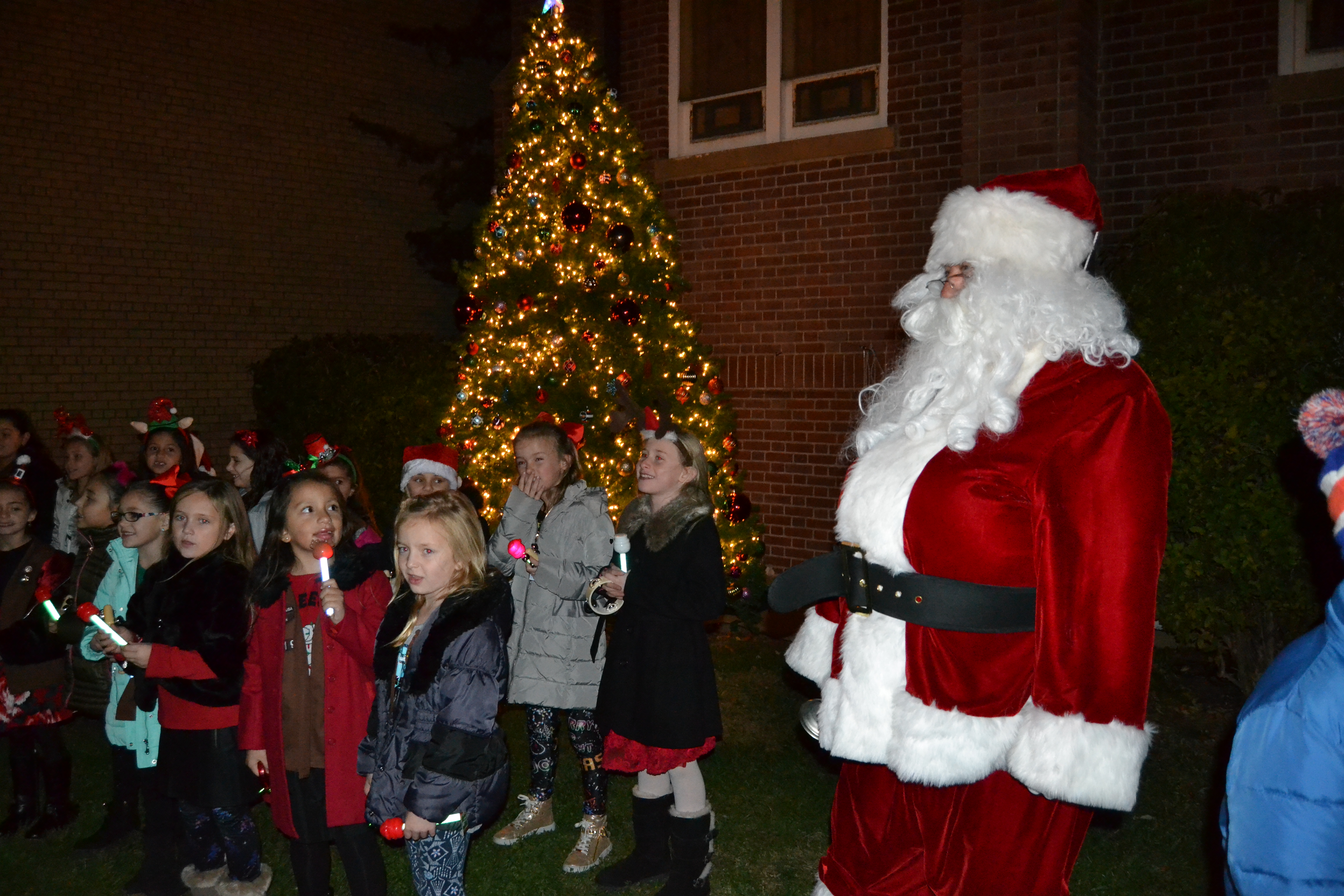 Old St. Nick led the countdown to the tree lighting in front of the church. Once the tree was lit, members of Girl Scout Troop 4419 entertained the audience with their renditions of Christmas songs including “Rudolph the Red Nosed Reindeer,” “Silent Night,” “We Wish You a Merry Christmas,” and other holiday jingles.
