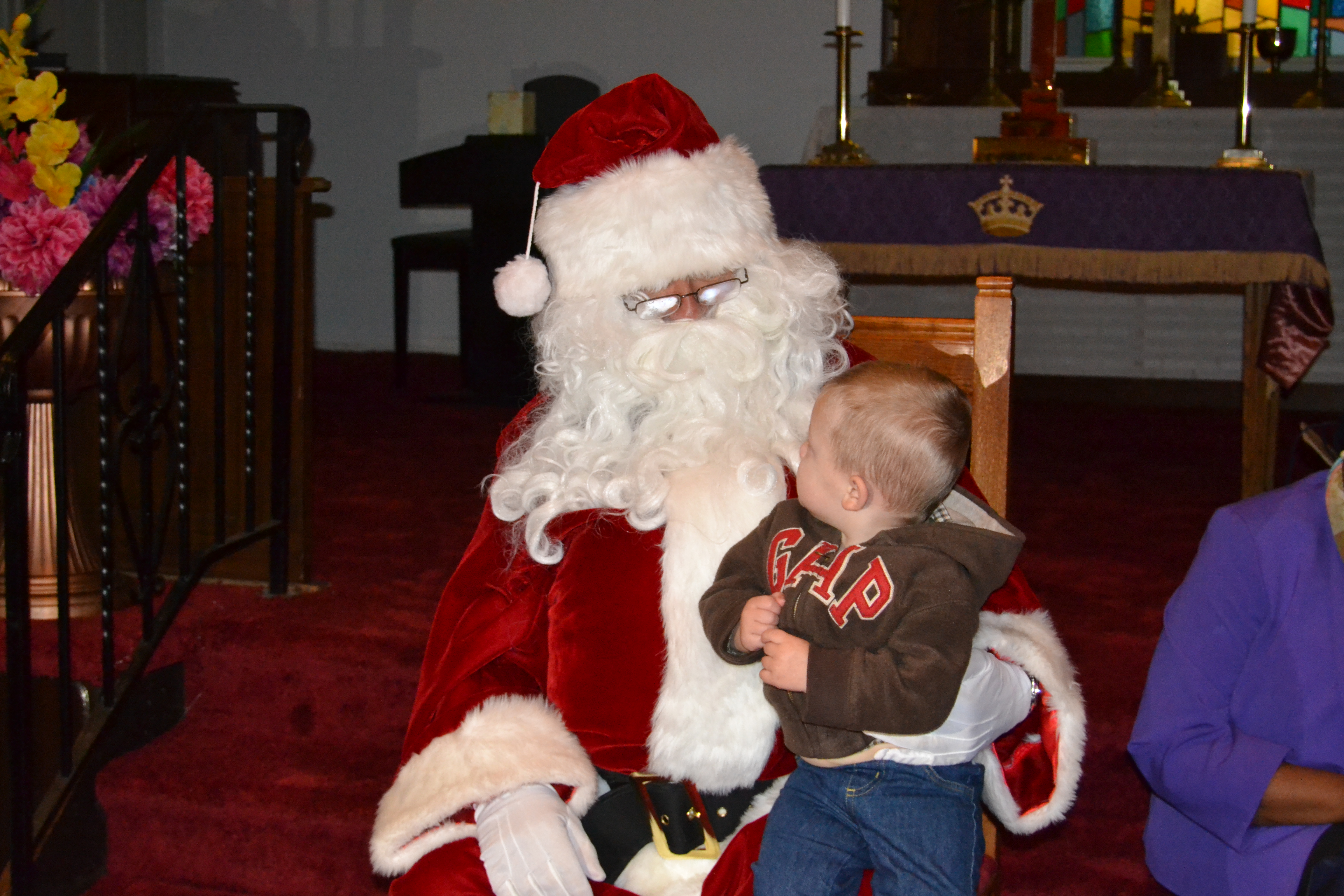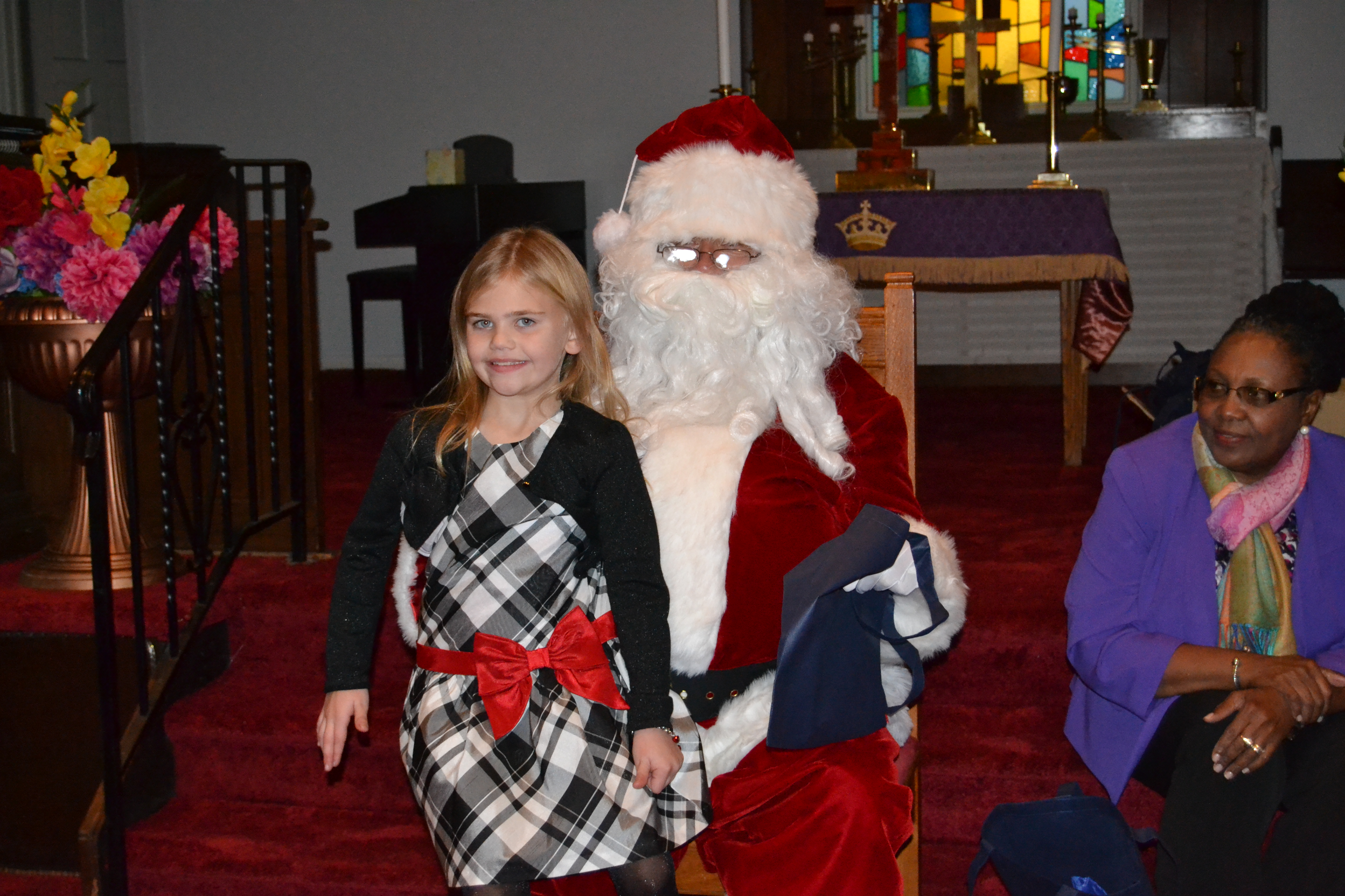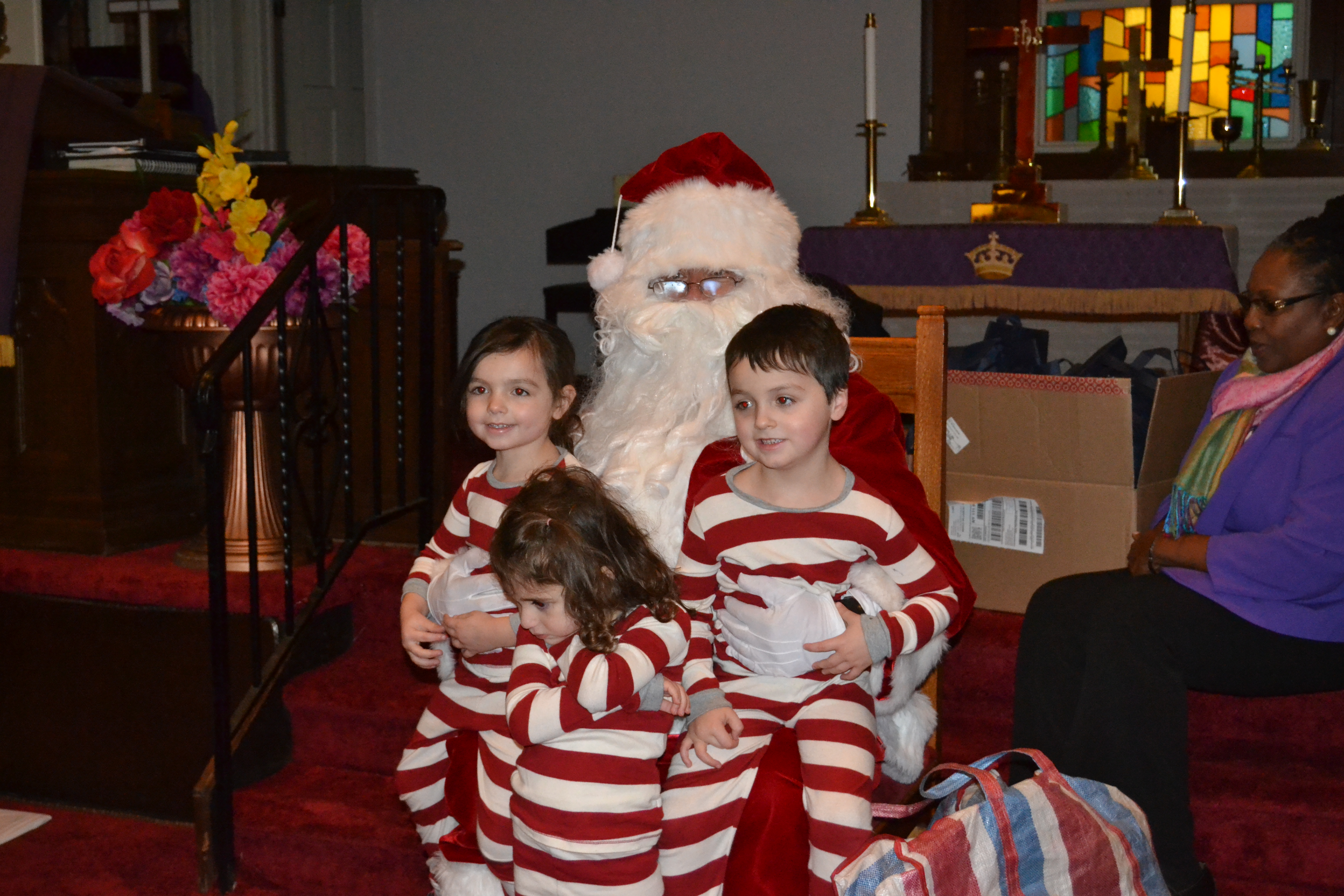 Everyone was a festive mood at the Community United Methodist Church on Metropolitan Avenue in Middle Village on Friday night as children of all ages awaited the arrival of the big man in the red suit.