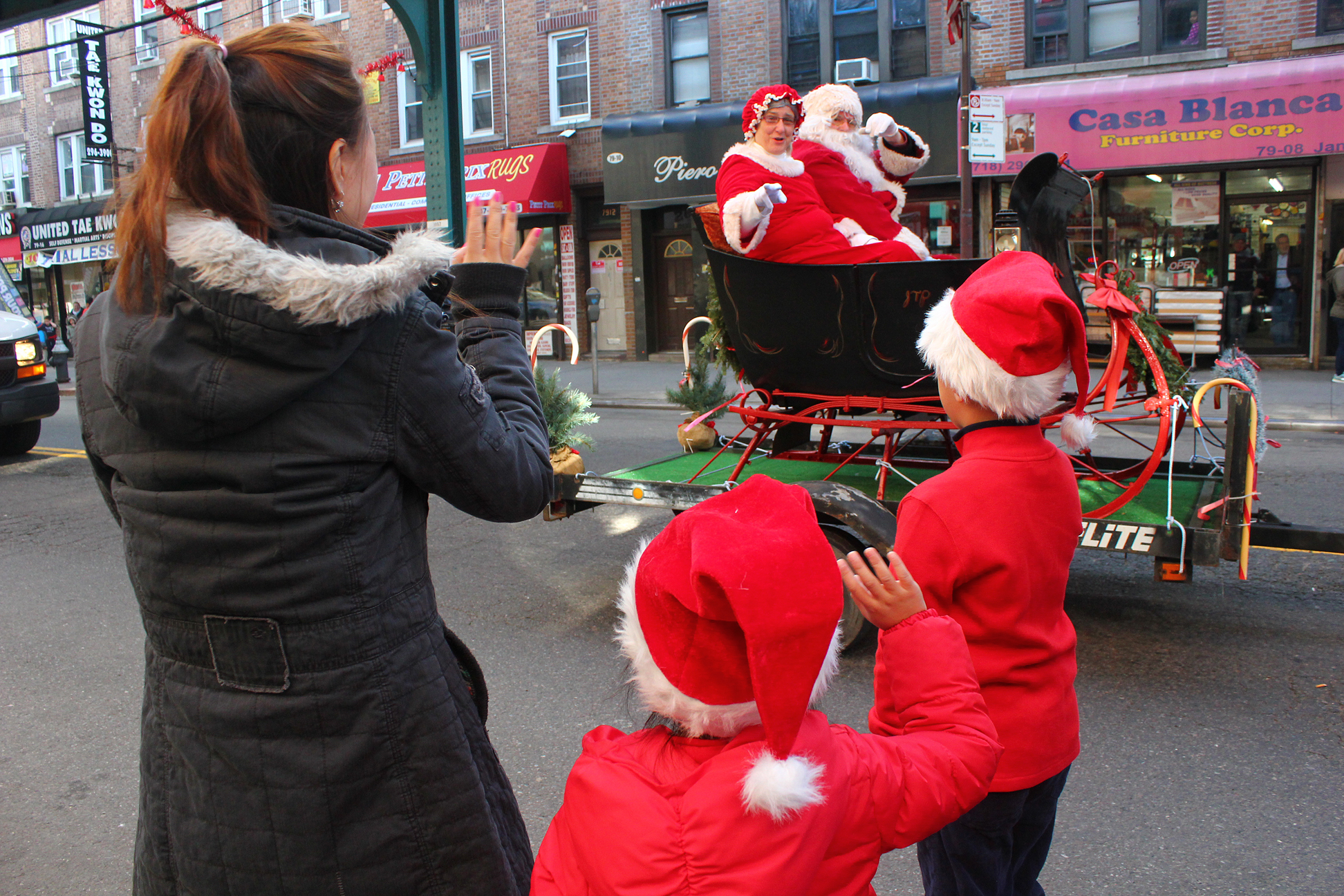 Joined by his wife, Mrs. Claus, Santa rode his sleigh along Jamaica Avenue from 96th Street to the Franklin K. Lane Campus near Dexter Court. They were accompanied by a host of participants including school groups, the Franklin K. Lane Junior ROTC, the Woodhaven History Club, the East Coast Car Association and the Greater Woodhaven Development Corporation, which sponsored the event.