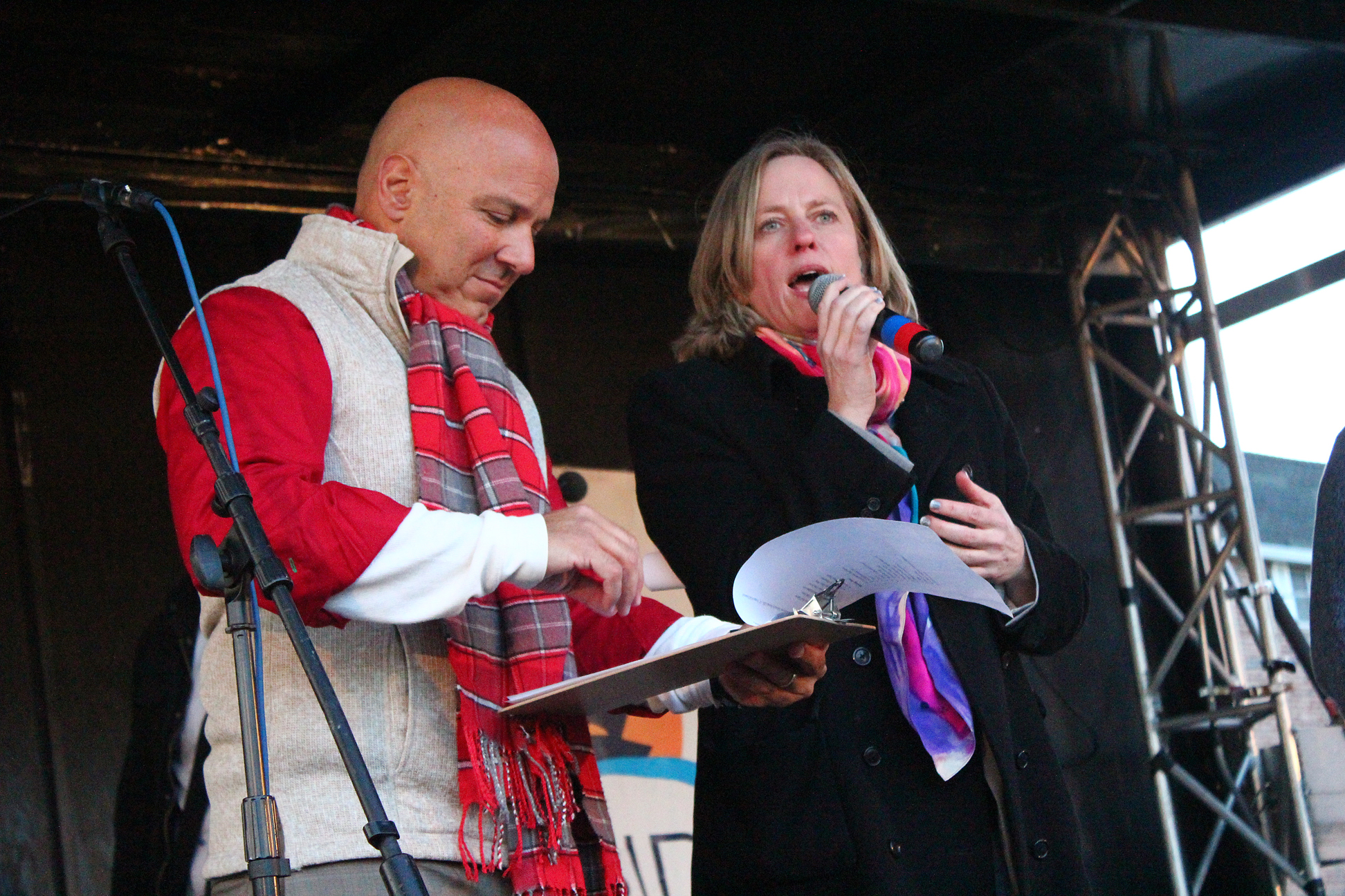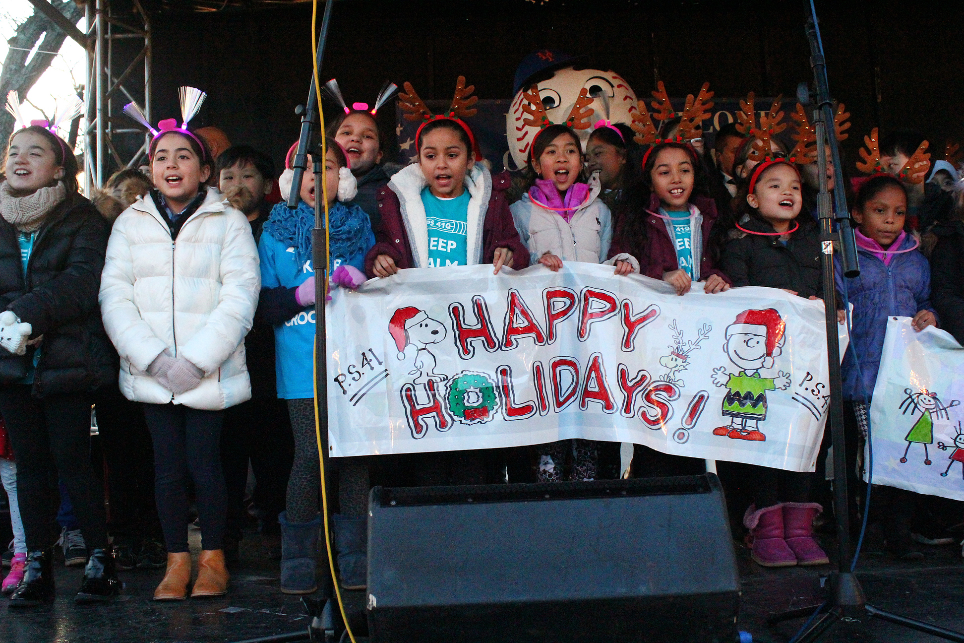 There, the participants assembled and enjoyed performances by local children’s choirs of popular holiday hits. Vallone and others helped light both a holiday tree as well as a menorah near the stationhouse.