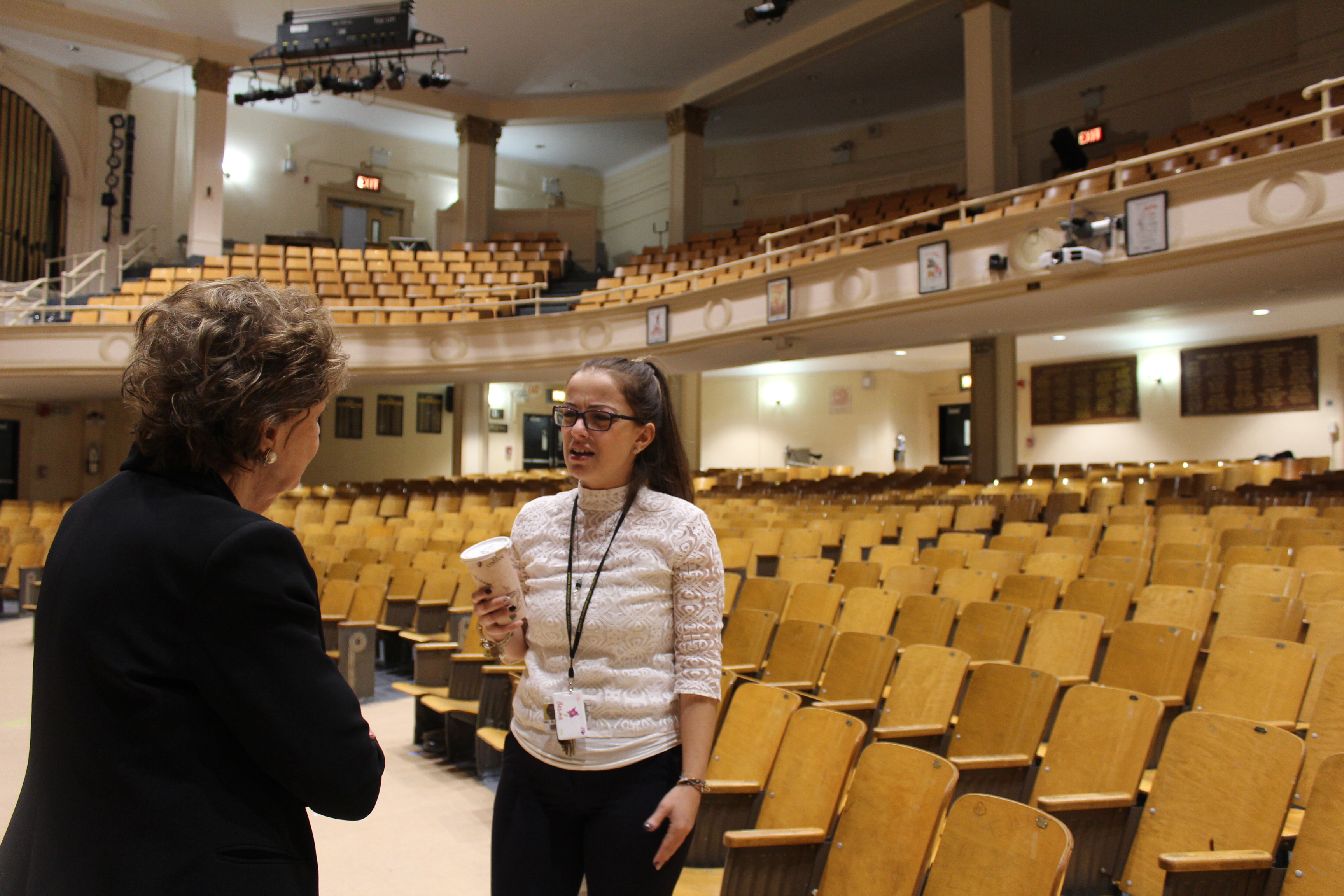 As I walked through the sparkling clean, quiet halls, I tried to remember my three years there many decades before. I was thrilled to see the handsome, 1,500-seat auditorium where I played violin in the orchestra and sang my heart out in “Sing,” the interclass musical competition that lives on today. Each class completes against the other and now there is inter-high school “Sing,” a competition that has become a fundraiser for the American Cancer Society.