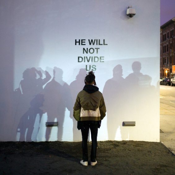 “On February 10, 2017, the Museum of the Moving Image abandoned the project,” reads the He Will Not Divide Us website. “The artists, however, have not.”
