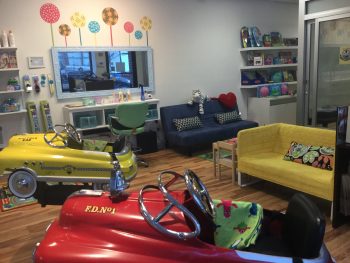 Both sides of the salon will have televisions installed and will play separate programming. The section for teenagers and adults will have clear sliding doors which can be utilized in case parents or their teens wish to engage in private conversations with their stylist, while still keeping an eye on their younger ones.