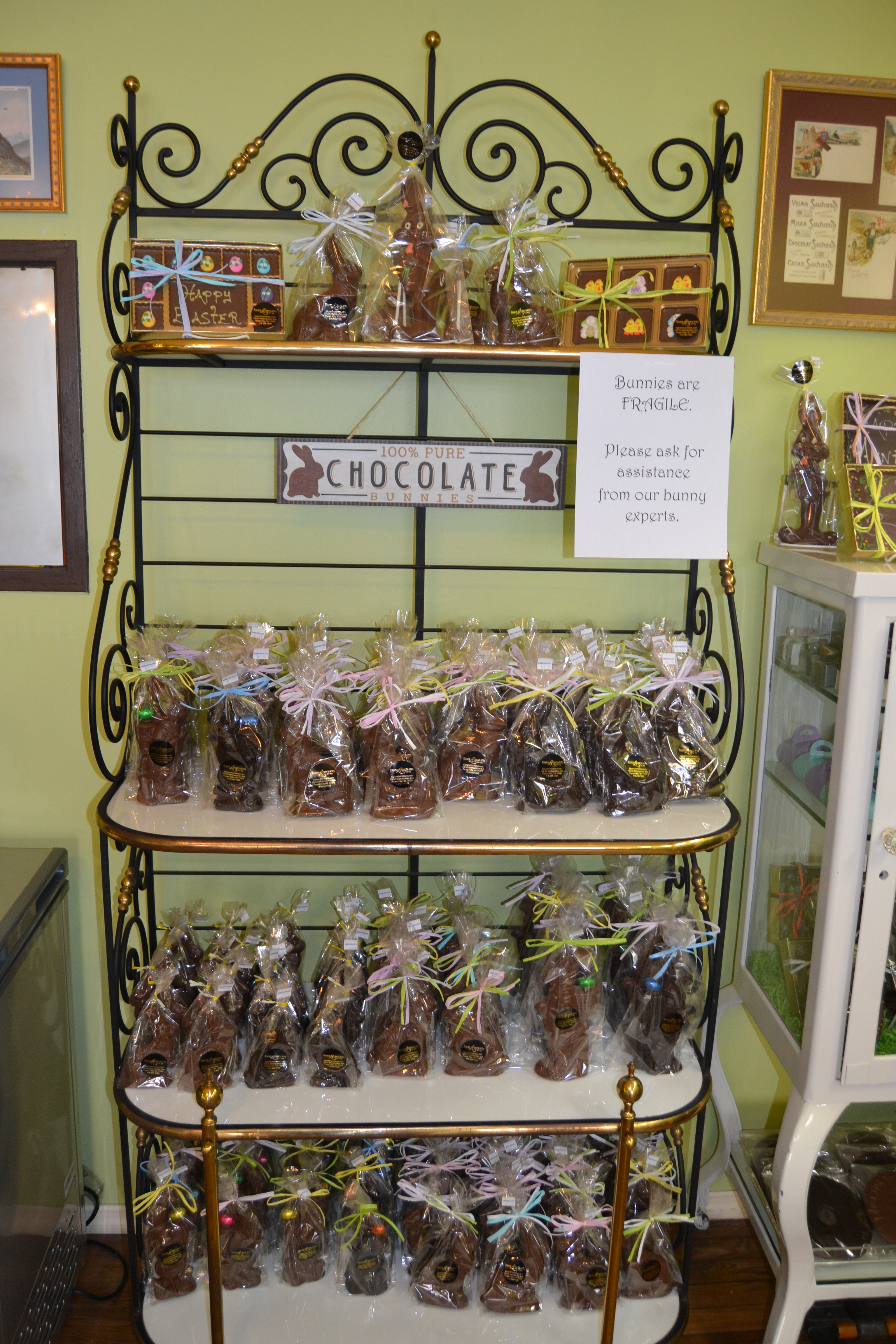 Another big thing — literally — that the new owners have kept since taking over Aigners is the tradition of raffling off “Harvey the Bunny,” a giant, 25-pound chocolate bunny, just in time for Easter. All the money collected in the raffle will be matched dollar for dollar by the owners, and will then be donated to a local charity.