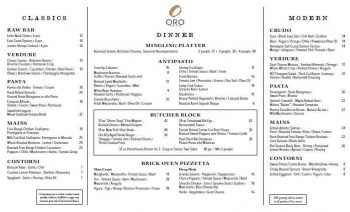 Appropriately, the menu is divided into two sides labeled “Classics” and “Modern,” with the former listing familiar dishes such as penne alla vodka, fettuccini alfredo and whole roasted branzino.