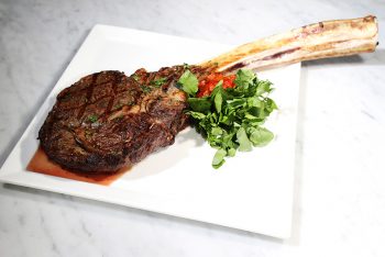 Another new portion of the menu titled, “Butcher Block,” features steakhouse meats including a 28 ounce bone-in Tomahawk rib eye steak, a 14 ounce New York strip steak, and the restaurant’s own dry-aged steak burger with taleggio, tomato jam, and pickled onions served with thrice cooked fries.