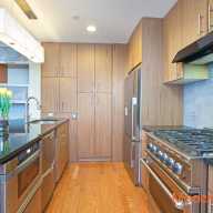 - A designer kitchen with sleek, granite counter tops and stainless steel appliances